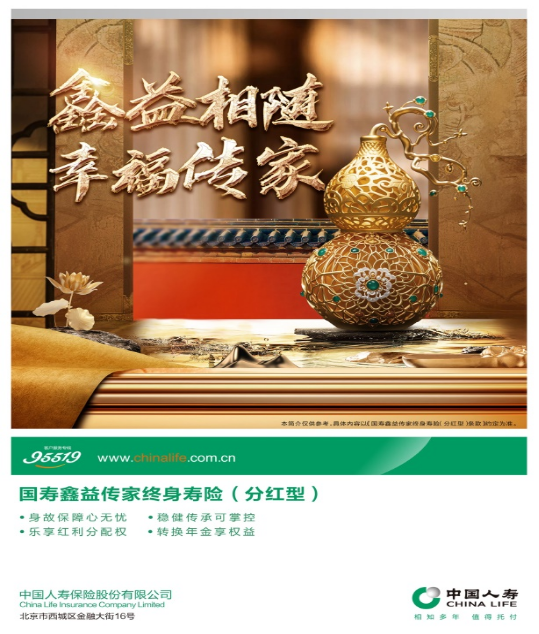 国寿鑫益传家终身寿险(分红型)作为一款兼具寿险“保障”与分红“储备”功能的终身寿险,不仅有传统寿险稳定的保障,更有分红可期,为客户奉上诚意满满的贴心呵护,有效帮助客户完成保障、资金规划等人生目标。
