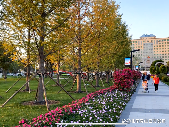 长阳公园秋景如画,公园内栽植品种丰富的菊花,颜色鲜艳夺目。彩叶树黄栌、元宝枫、银杏等,如同打翻了大自然的调色盘。长阳公园改造后提升了各类服务设施,广场开阔,适合不同年龄游客休闲放松。