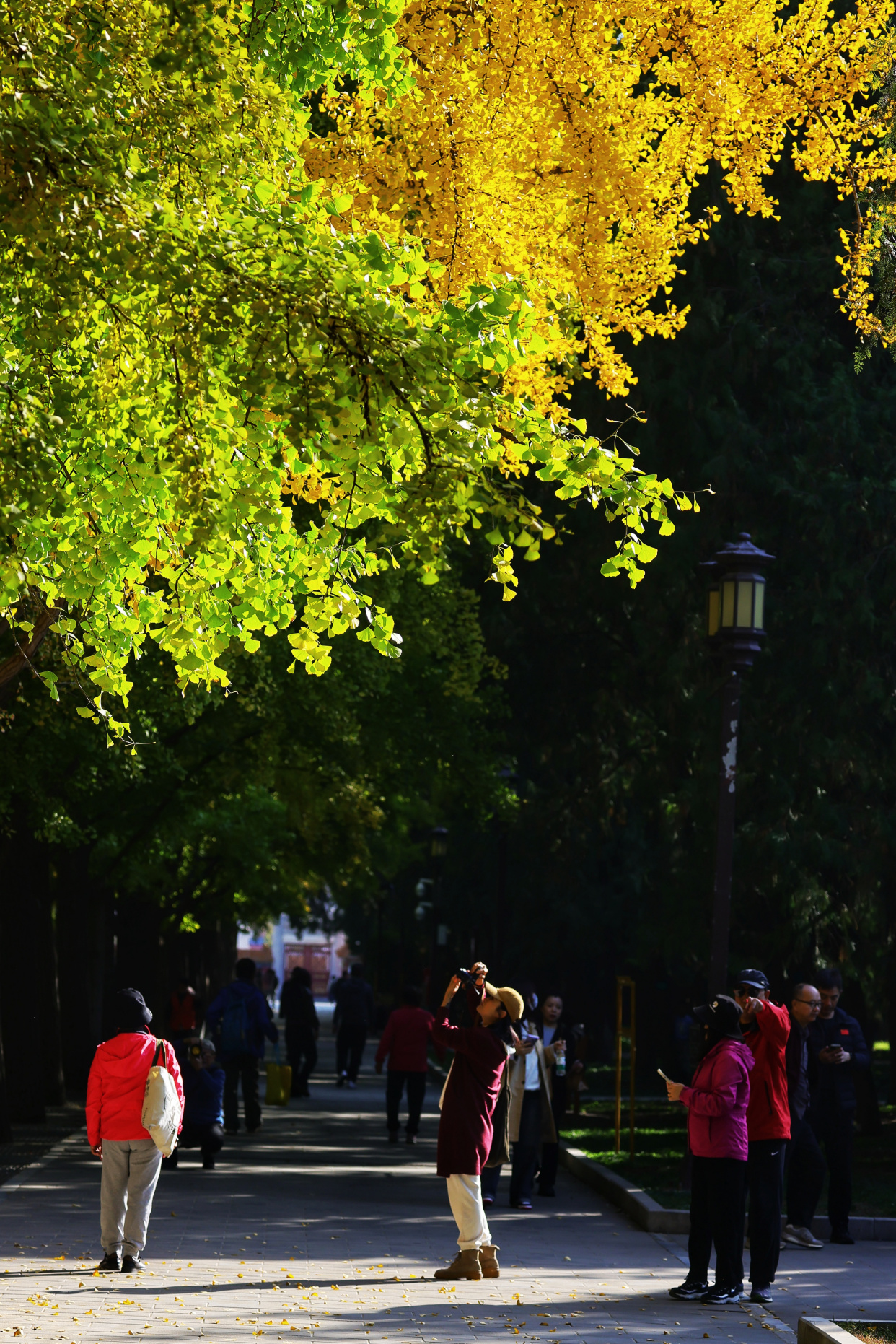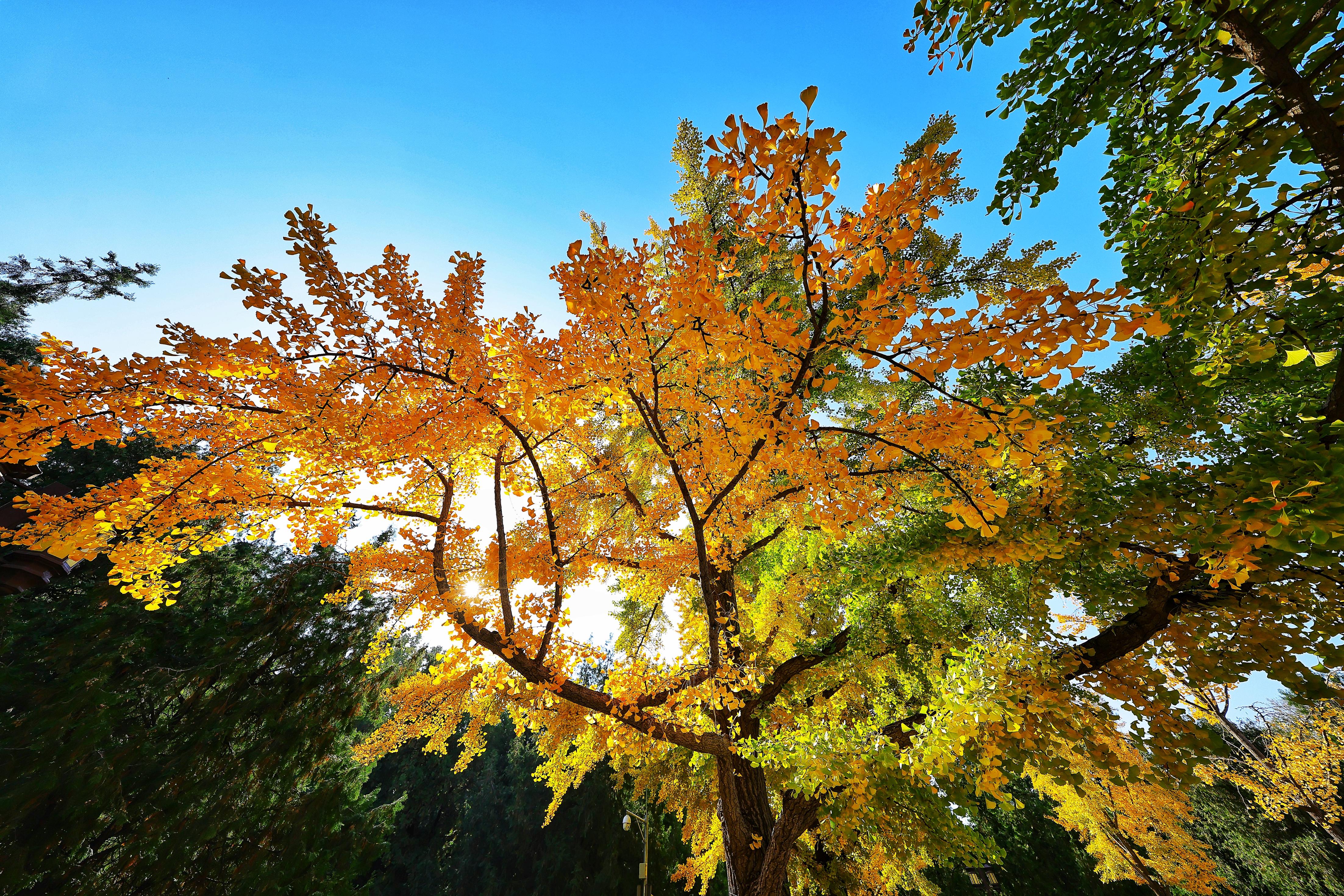 地坛公园的银杏树最佳观赏期通常在每年的10月底到11月中旬。公园内的银杏大道金色灿烂,美不胜收,将这里的秋天变成了浪漫的童话世界,微风吹过,树上银杏叶散落一地,吸引了众多市民和游客前来游览打卡、拍照留念。