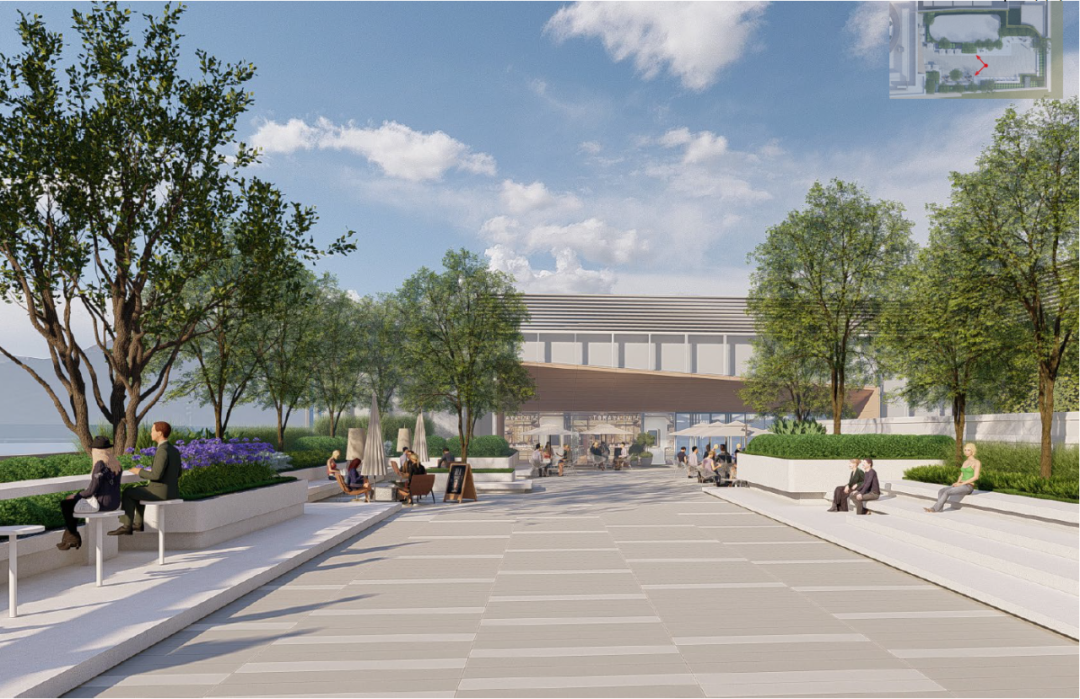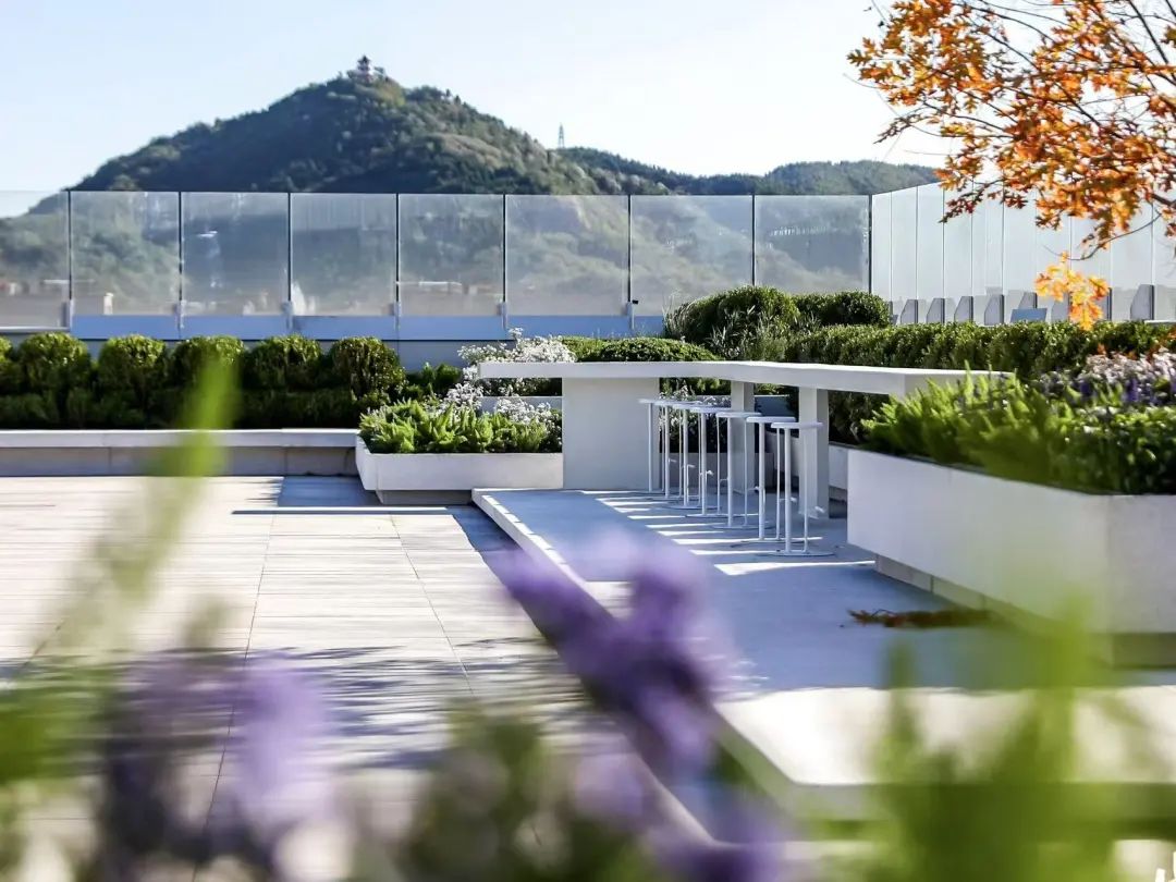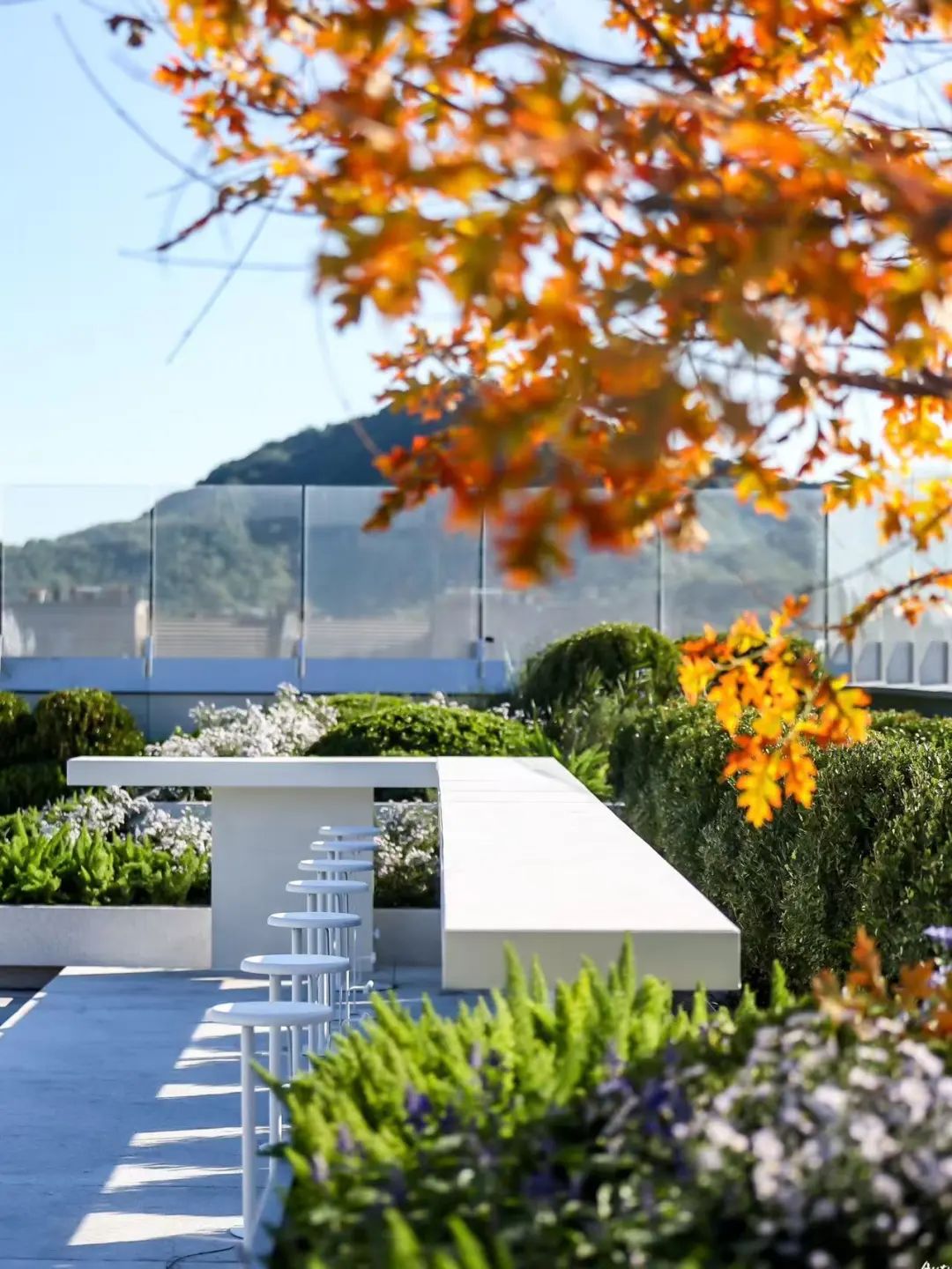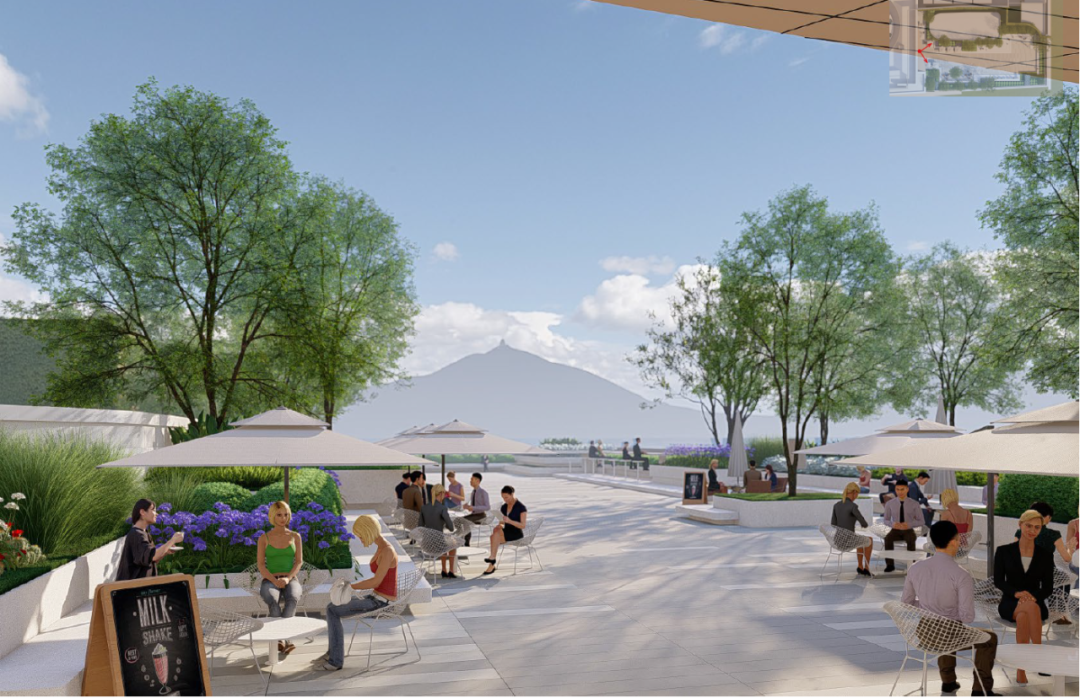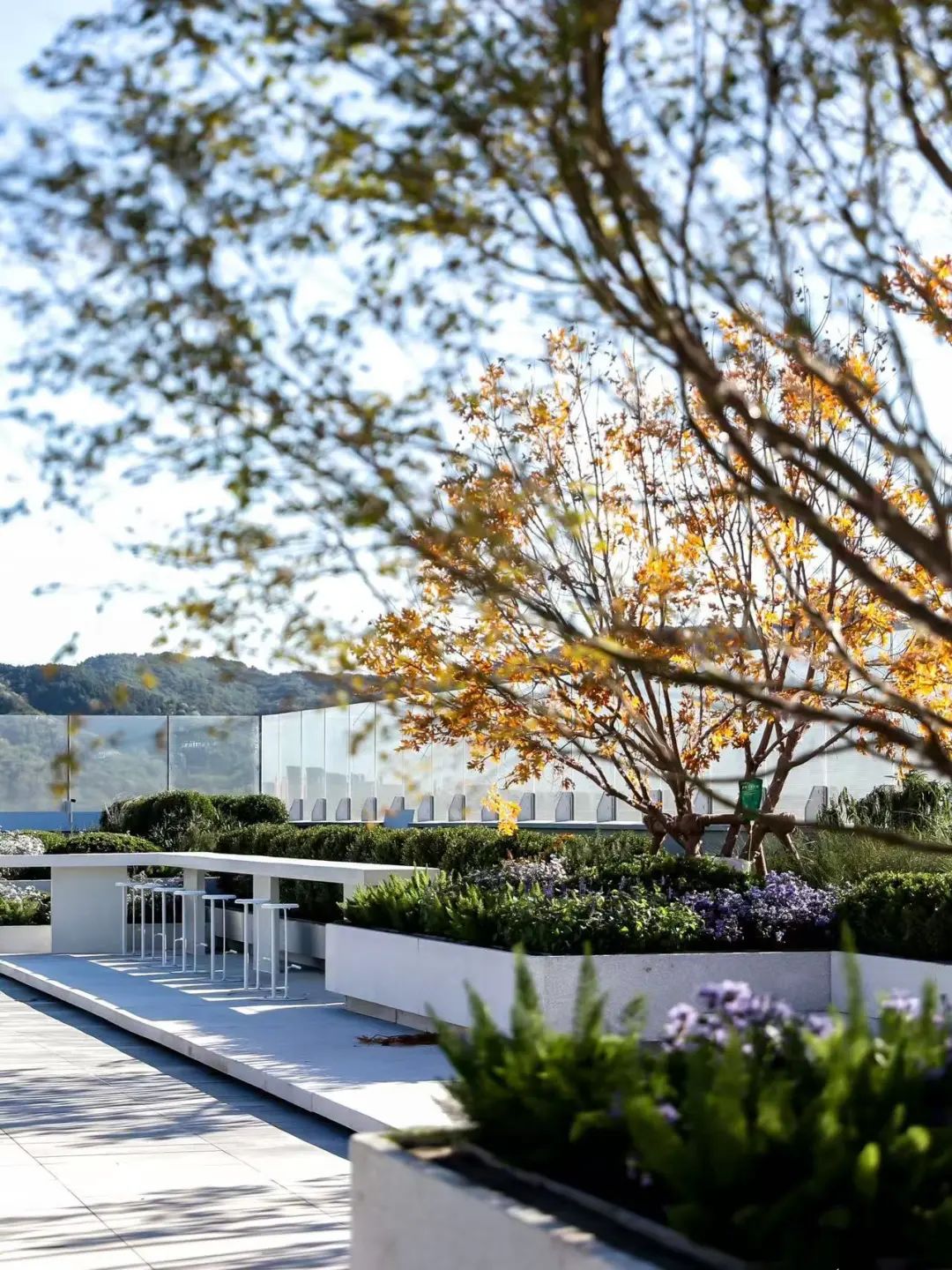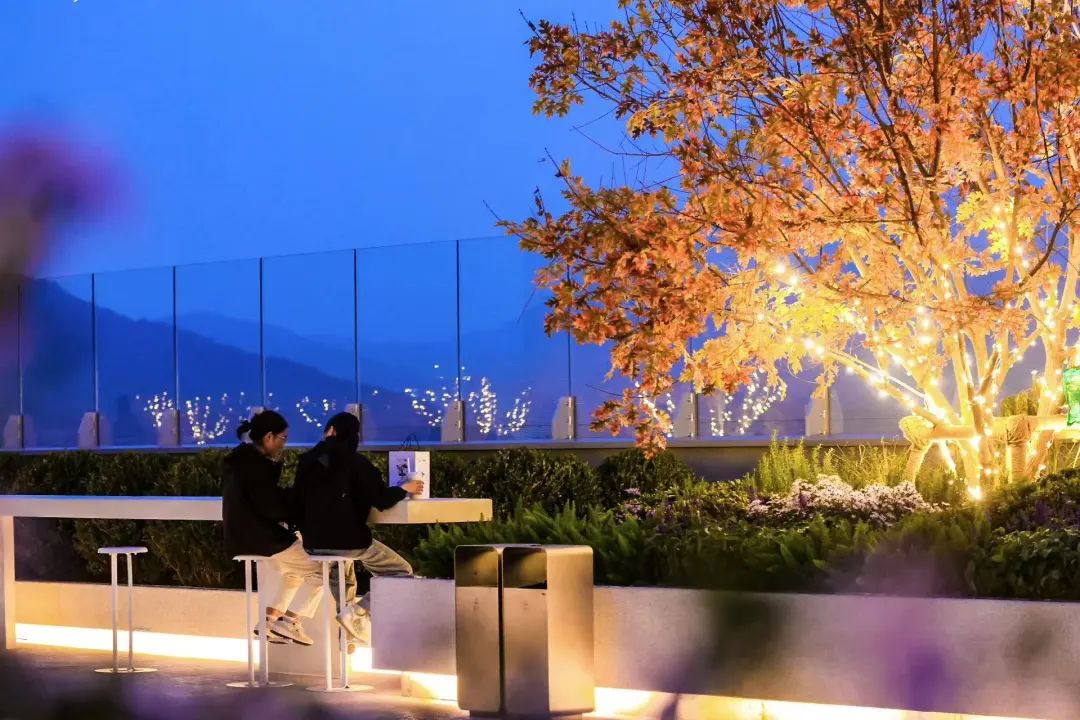 整体空间呈半包围状态,与室内商业相交,又具有开阔的观景视野。据了解,“望季花园”依据场地整体空间逻辑共分为两大板块,其中商业活动板块,与室内的商业业态相呼应,可以满足市民在观景的同时对商业活动的需求;而观景休闲板块,打造观景坐台、花园剧场、望山吧台等,面向景观山脉,界面开阔疏朗,具有良好的观景视野。