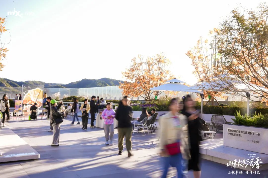 记者在现场看到,“望季花园”还为大家贴心准备了座椅和遮阳伞,秋日暖阳,拿一杯咖啡,读一本好书,与三五好友闲聊,惬意舒适的氛围拉满。