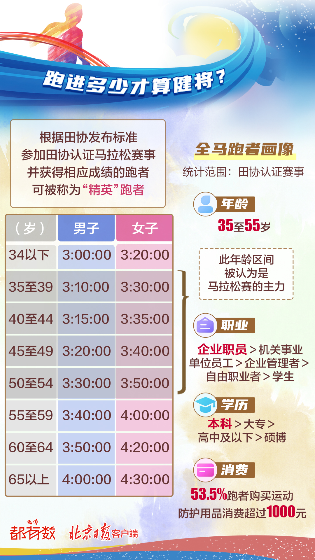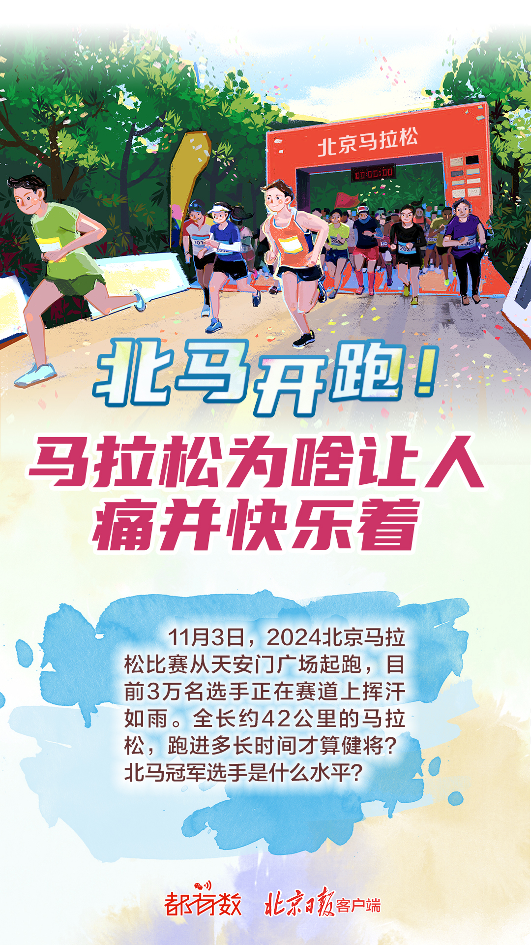 11月3日,2024北京马拉松比赛从天安门广场起跑,目前3万名选手正在赛道上挥汗如雨。全长约42公里的马拉松,跑进多长时间才算健将?北马冠军选手是什么水平?