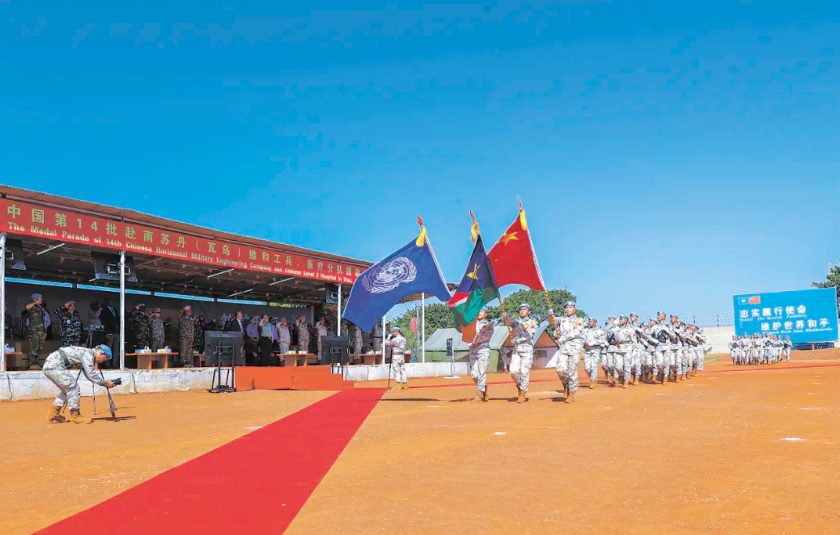 近日,联合国南苏丹特派团举行授勋仪式,向中国第14批赴南苏丹(瓦乌)维和工兵、医疗分队全部300余名官兵授予联合国和平荣誉勋章,以表彰他们为维护南苏丹和平稳定作出的突出贡献。特派团各级官员和中国驻南苏丹大使等160余名嘉宾参加仪式。