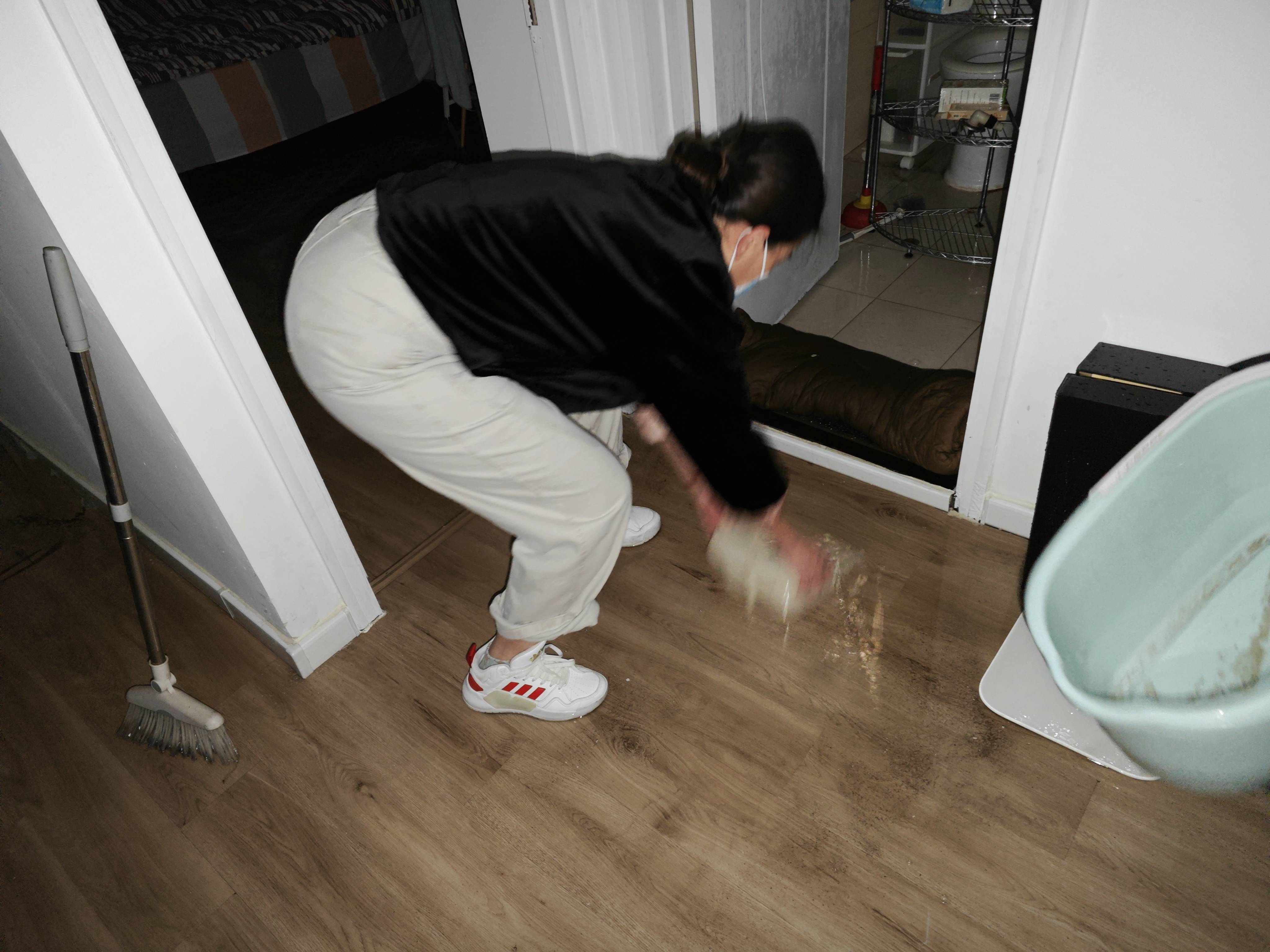 此时,社区工作人员迅速找来桶、笤帚等工具开展积水清扫。经过一个多小时的努力,室内和楼道内的积水被清理干净。大家顾不上自己打湿的鞋子和裤子,立即在居民微信群内发布通知,提醒居民对自家及楼道内的供暖管道进行排查,避免财产损失。
