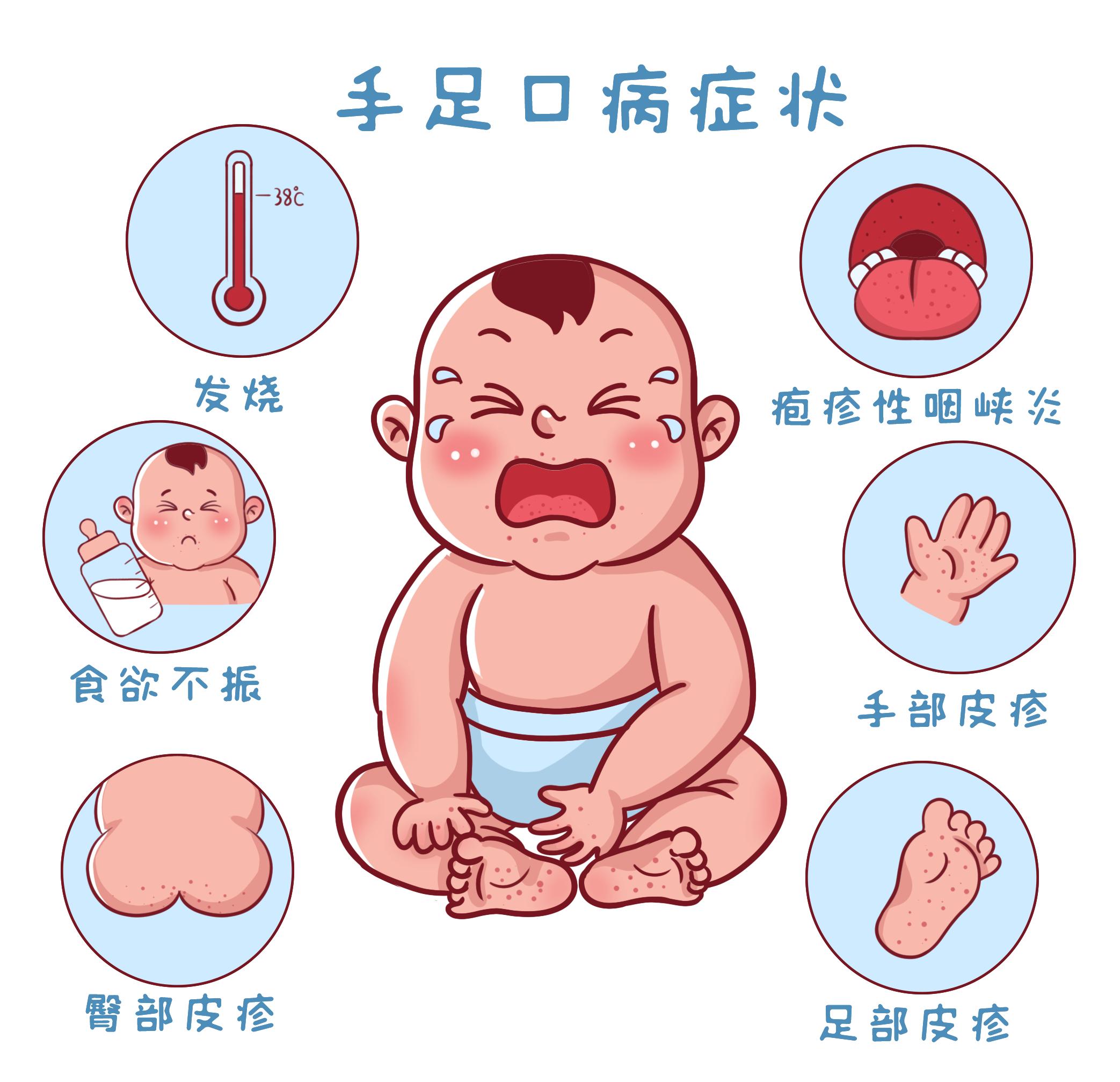 手足口病是一种由肠道病毒引起的传染病,主要侵犯婴幼儿和学龄前儿童。感染后,患者的手、足、口腔等部位会出现疱疹或溃疡,并伴有发热、咳嗽、流涕等症状。这些疱疹和溃疡通常会引起疼痛和不适,影响患者的进食和日常生活。此外,手足口病还可能引发脑炎、心肌炎等严重并发症。