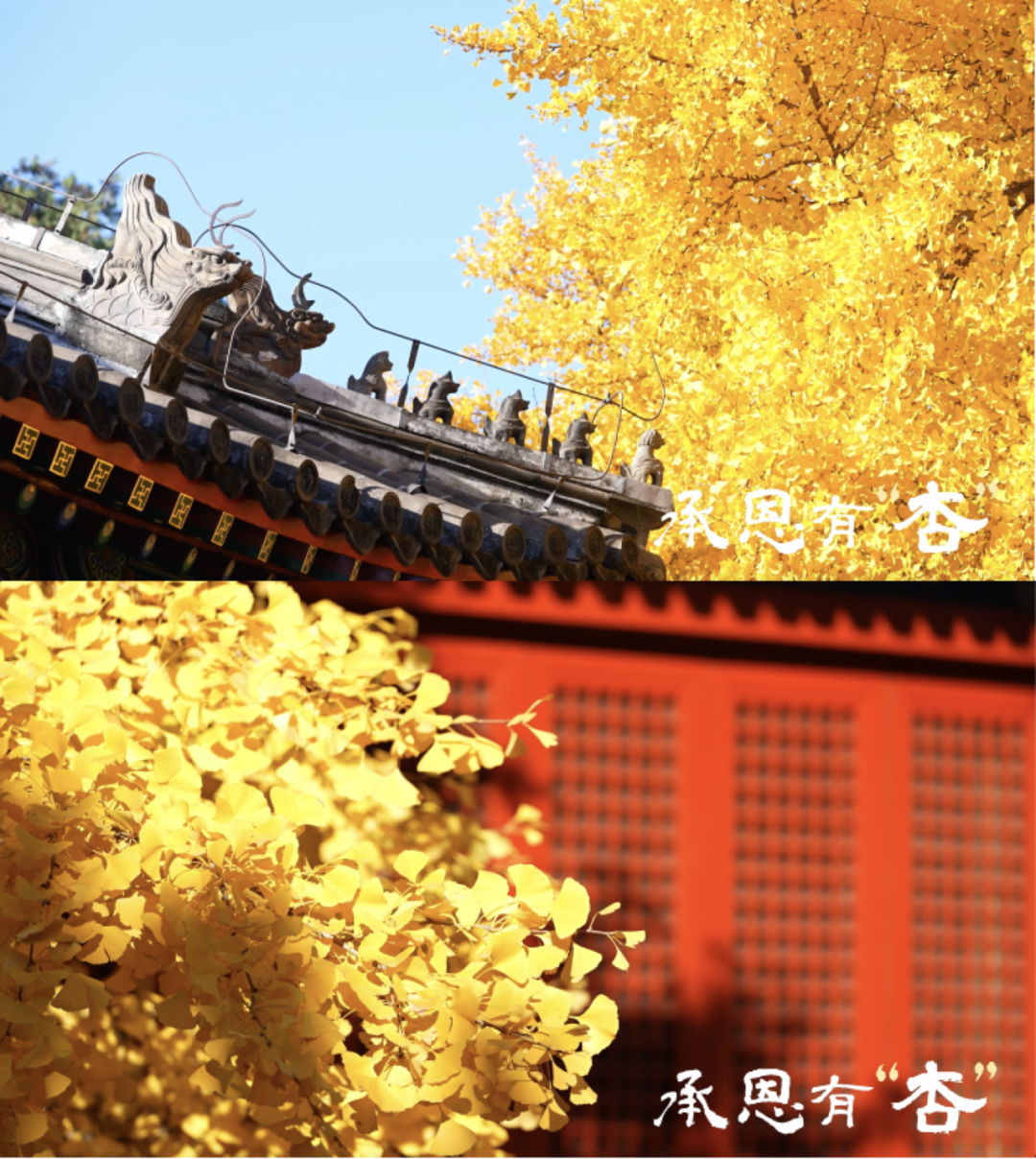 从11月4日开始,承恩寺限时免费赏秋活动正式推出,已经有不少小伙伴体验了银杏古刹的承恩秋日美景。