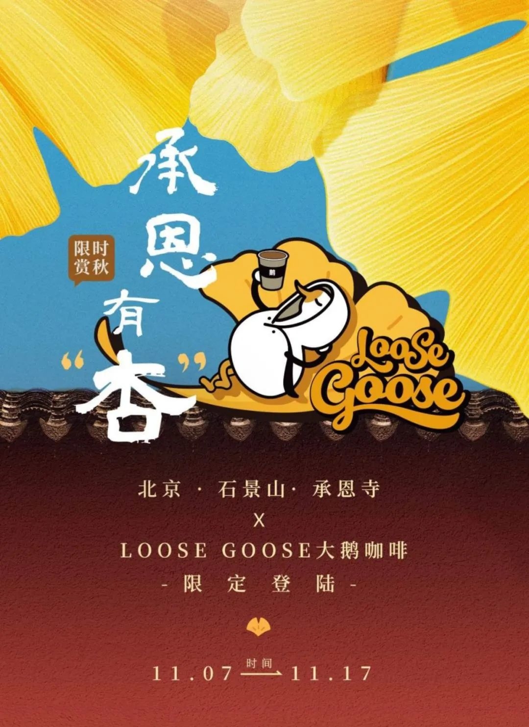 承恩寺与 LOOSE GOOSE 咖啡携手合作,为您带来一场味蕾与视觉的双重盛宴。在秋日古寺之景下,坐下来品尝一杯香气四溢的咖啡,让温暖在口中蔓延。咖啡的醇厚与古寺的宁静相互交融,给您带来一份别样的享受。给自己一份温暖补给,放松身心,尽情享受这个美好的季节。