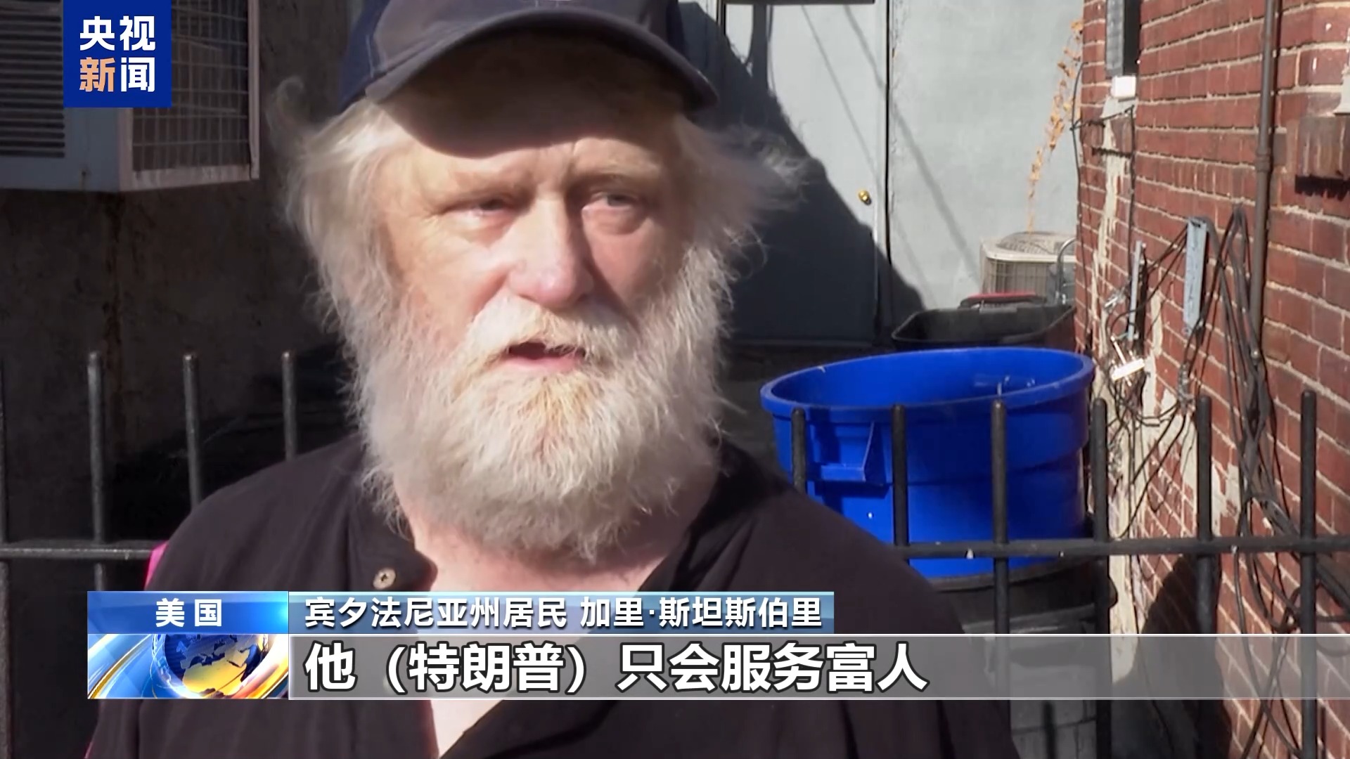 宾夕法尼亚州居民 加里·斯坦斯伯里:特朗普只会服务富人,给他的亲信带来好处,穷人不会有什么机会的。