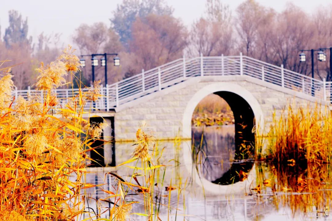 秋天的黑桥公园似被大自然打翻的调色盘,金黄银杏、火红枫叶、翠绿松柏交相辉映。