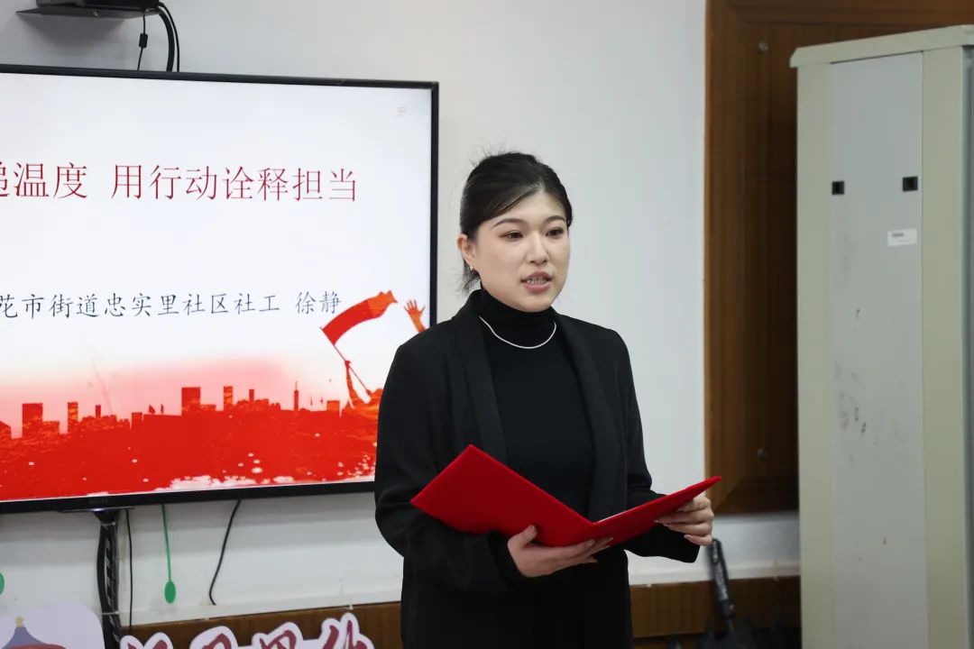 忠实里社区社工徐静以《以速度传递温度,用行动诠释担当》为主题,讲述了她在“接诉即办”工作岗位上,用自己的努力和汗水为居民带来温暖和笑颜的温馨故事。