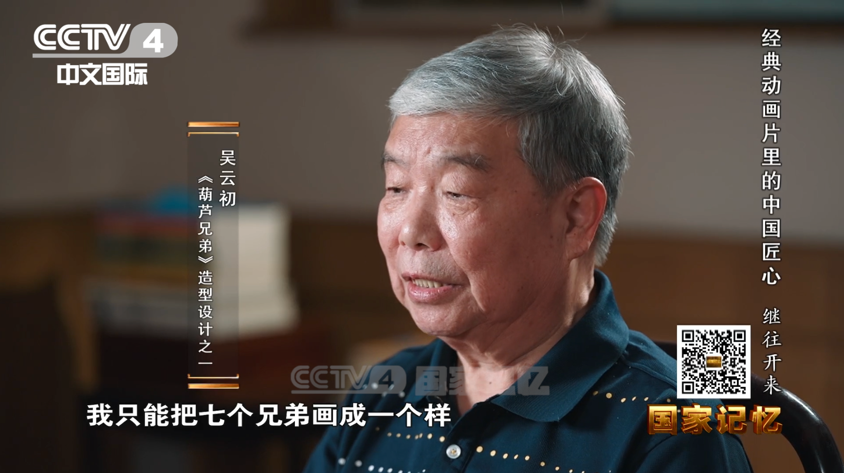 《葫芦兄弟》 造型设计之一 吴云初:用导演胡进庆的话来说,现在这个样子,实际上是我偷懒的一种方法。实际上,这不是偷懒,就是看菜吃饭,量体裁衣。我们只有这么多力量,只有这么多资金,必须要在这个时间段内完成,我只能把七个兄弟画成一个样,我只能把这群妖魔鬼怪跑到山洞里去,他说我是被逼出来的。