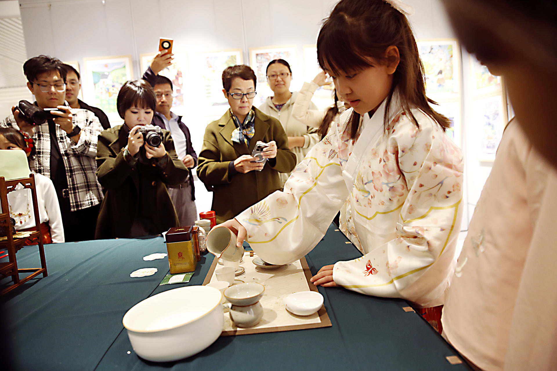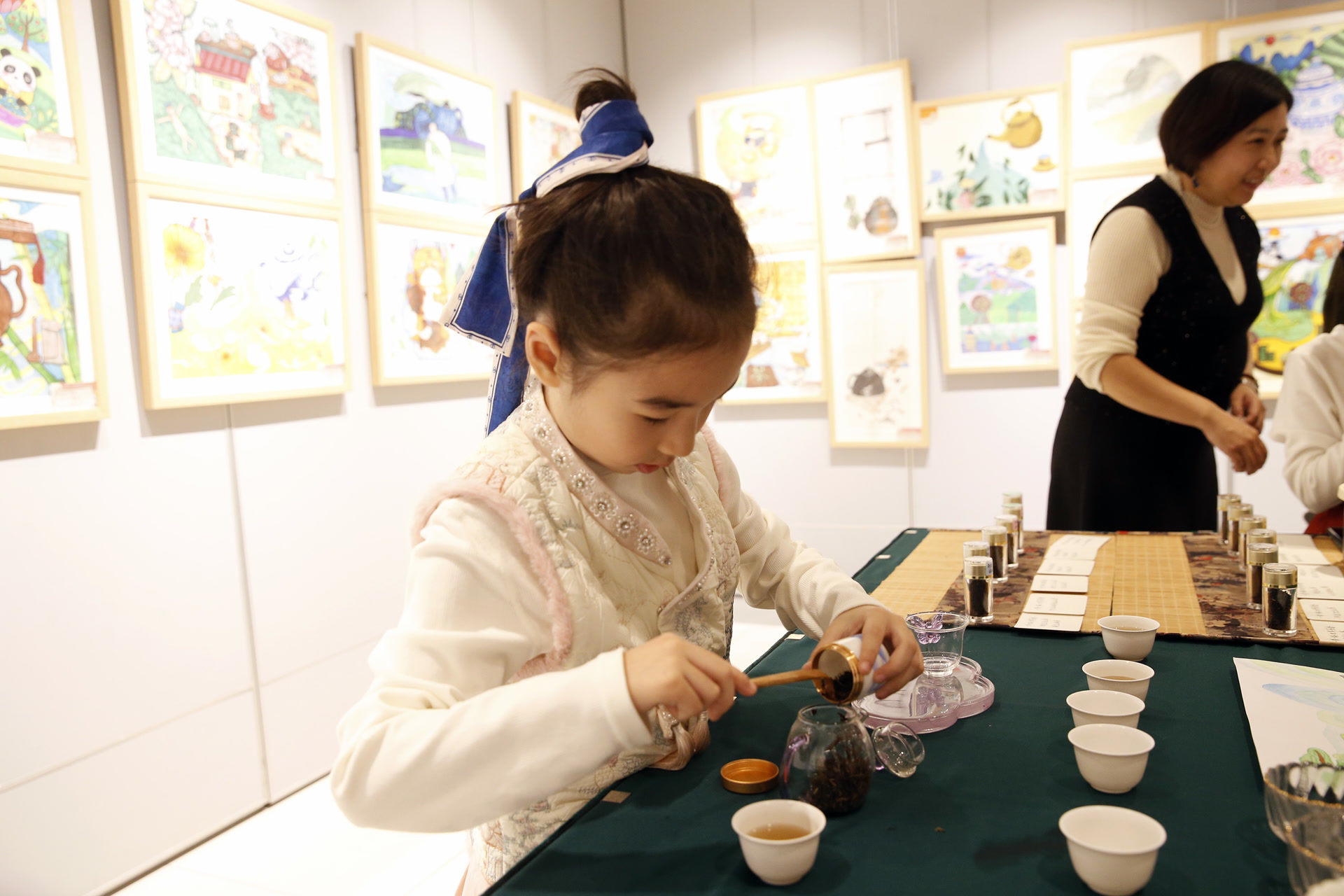 展览分为宋代点茶、茉莉花茶、世界红茶、百茶屋四个特色展台。观展学生还投票评选出自己最喜爱的3幅书画作品,最终选拔出的20幅作品将在该区中小学校间进行巡展。