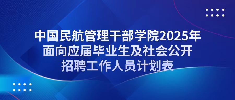 中国民航管理干部学院拟面向2025年应届毕业生及社会公开招聘教师岗和行政岗正式编制工作人员40人。