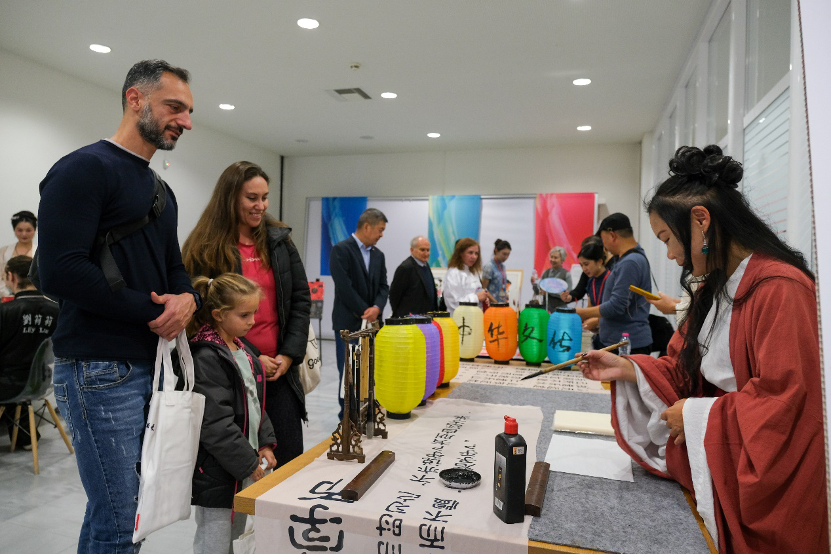为使希腊观众能更加直观地现场体验中华传统文化,展览主办方还从中国及希腊当地专门邀请了非遗方面的大师和专业人员进行剪纸、京绣、内画、皮影、古筝、太极、武术等非遗项目展示,观众可现场参与书法、茶艺、剪纸、流沙笺等非遗项目体验。