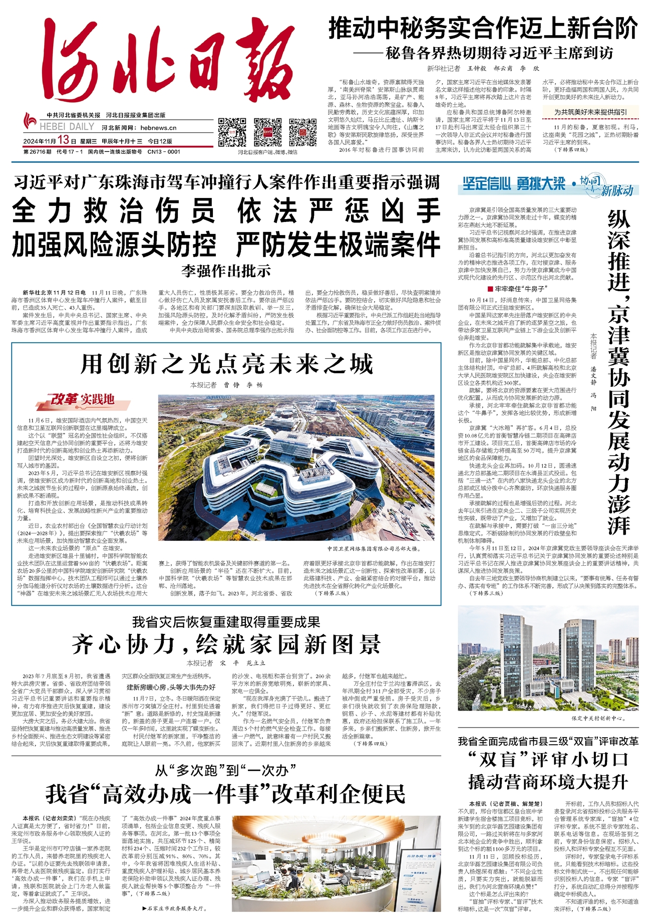 京津冀是引领全国高质量发展的三大重要动力源之一。京津冀协同发展走过十年,蝶变的精彩在燕赵大地不断延展。习近平总书记视察河北时强调,在推进京津冀协同发展和高标准高质量建设雄安新区中彰显新担当。