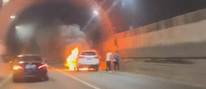 一辆行驶中的车辆突然起火