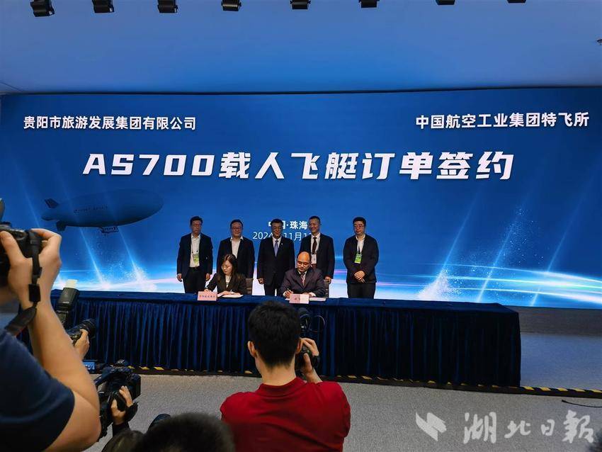 11月12日,第十五届中国国际航空航天博览会开幕首日,“祥云”AS700载人飞艇现场签订10架购艇订单,“鲲龙”AG600M飞机签署6架购/租合作协议。