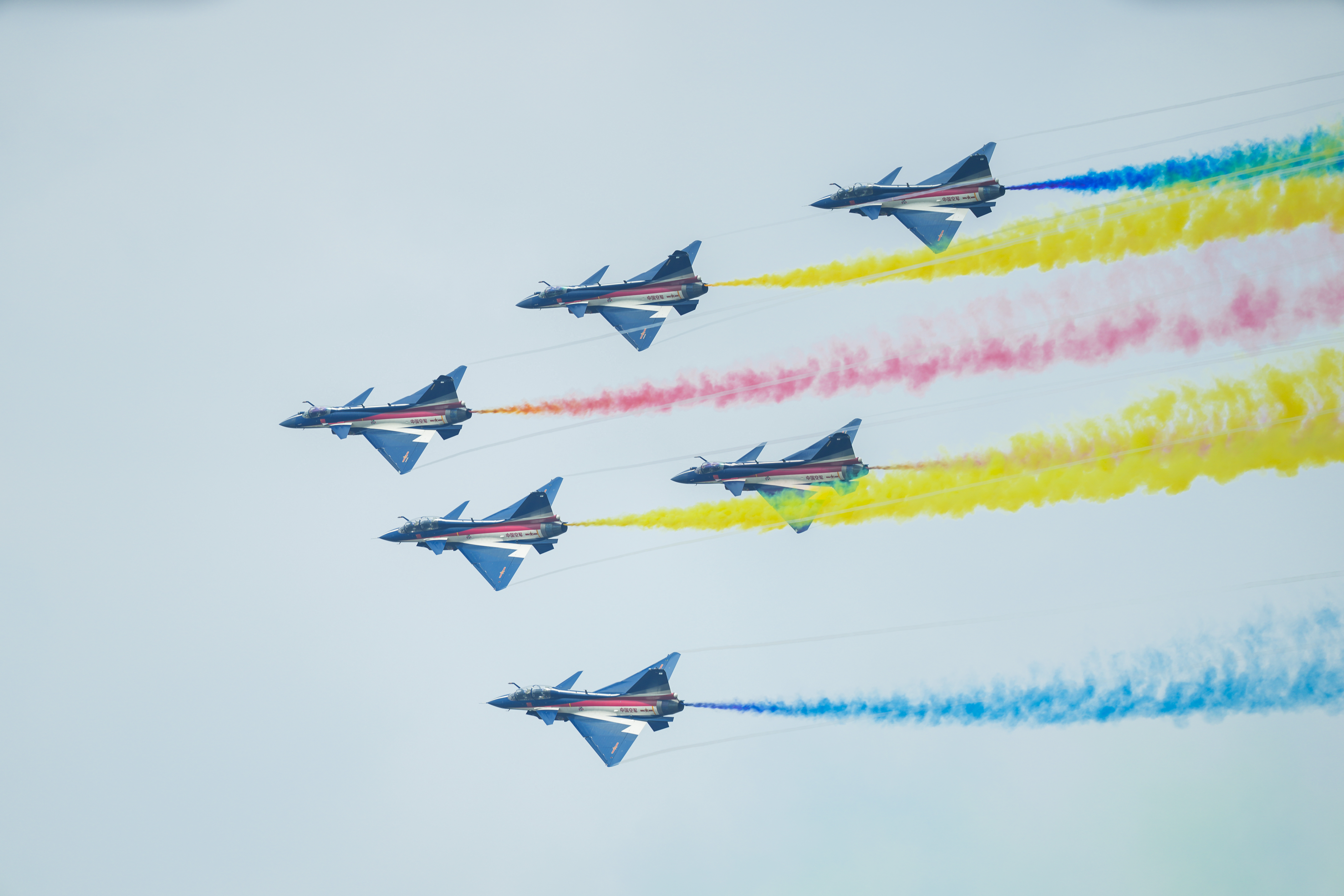 开幕式上,全球瞩目的歼-35A一出场便大仰角拉升、大半径横滚,展现绝佳机动性能;中国空军八一飞行表演队上演“六机筋斗”“四机叠罗汉”等动作,引发现场观众阵阵欢呼。
