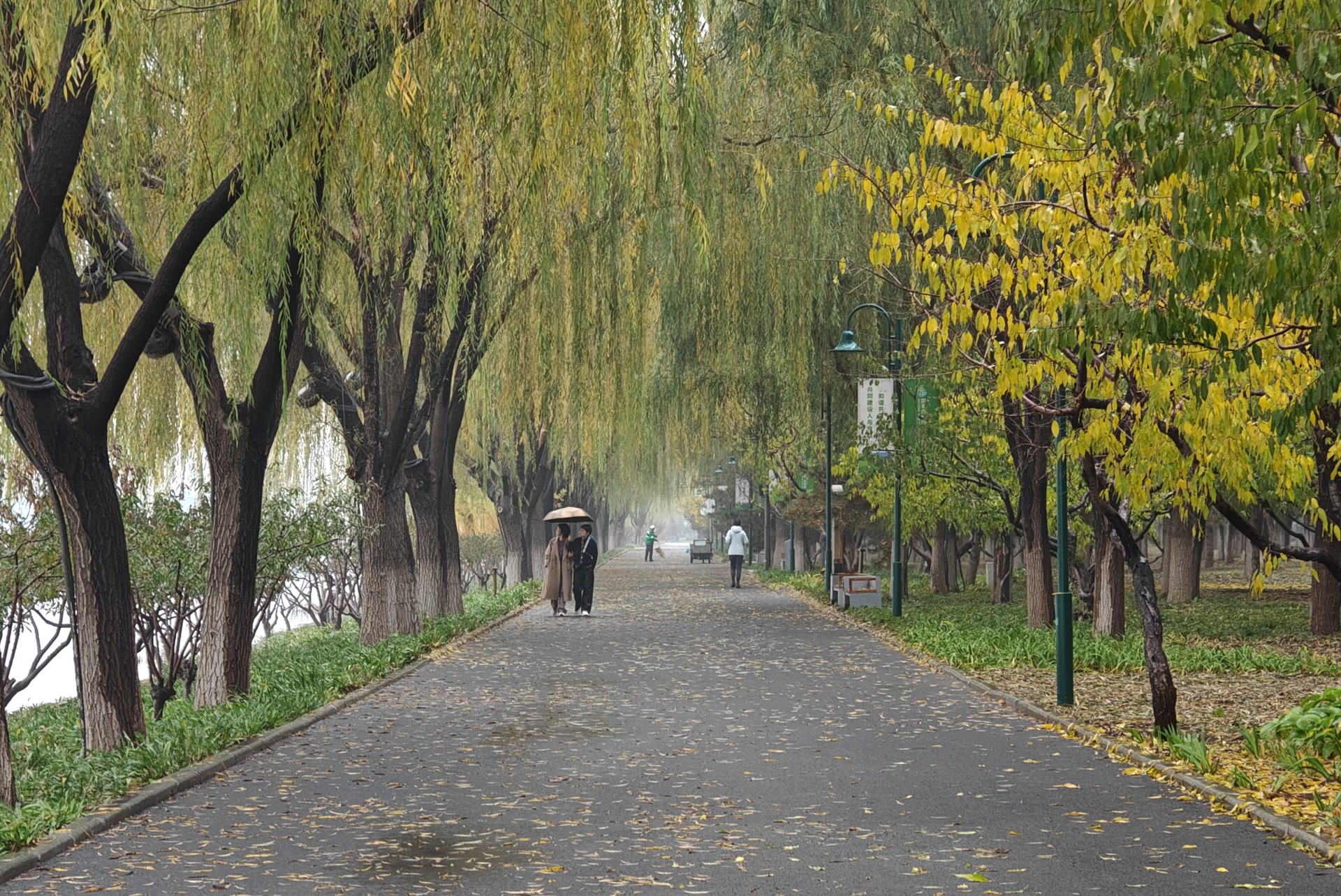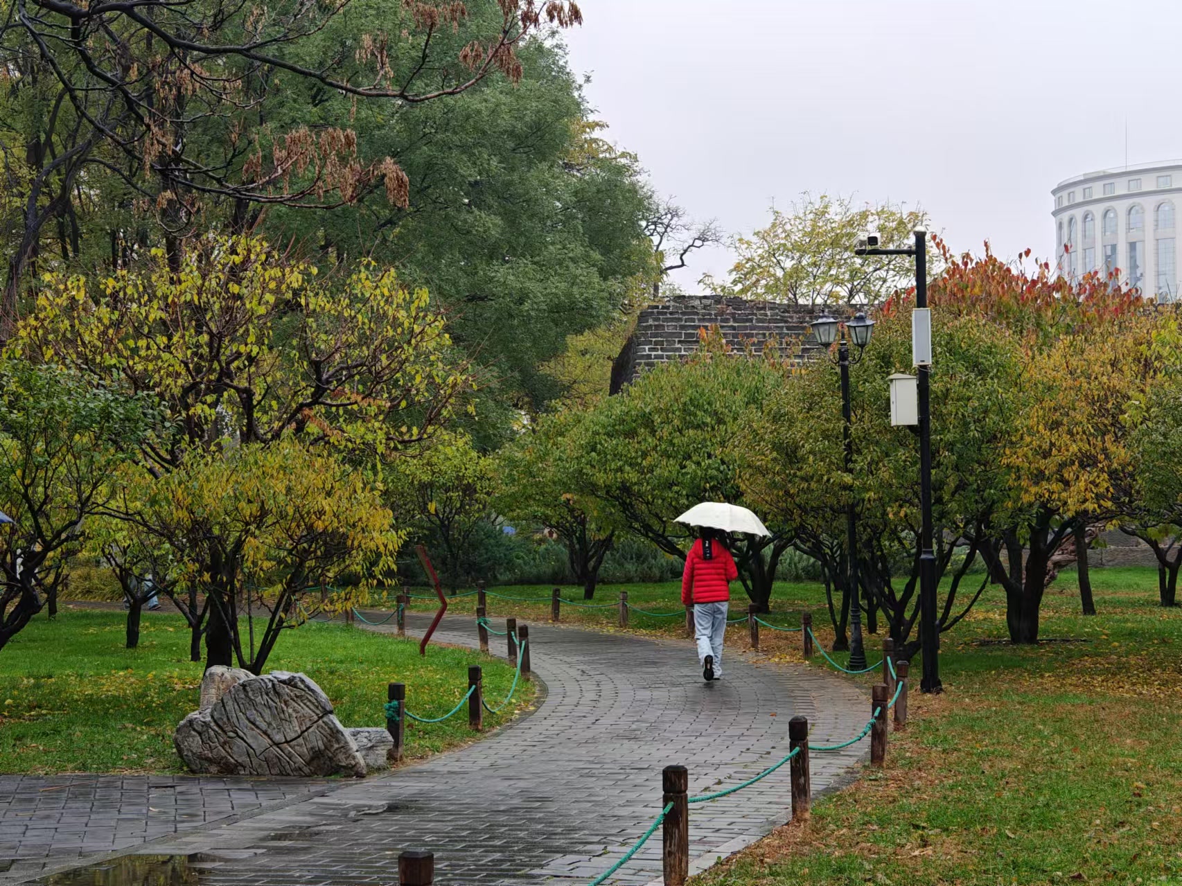 11月13日的北京,一场细雨过后,大自然仿佛被重新上了色。雨后的空气中弥漫着泥土和落叶的清新气息,让人心旷神怡。雨水洗涤过的树叶色彩更加鲜艳,显得清新而浪漫。