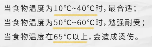 食管黏膜相对柔嫩,适宜的食物温度应在10℃-40℃, 而人们通常能耐受的最高食物温度约为50℃-60℃,一旦超过这个温度范围,食管黏膜就容易被烫伤。