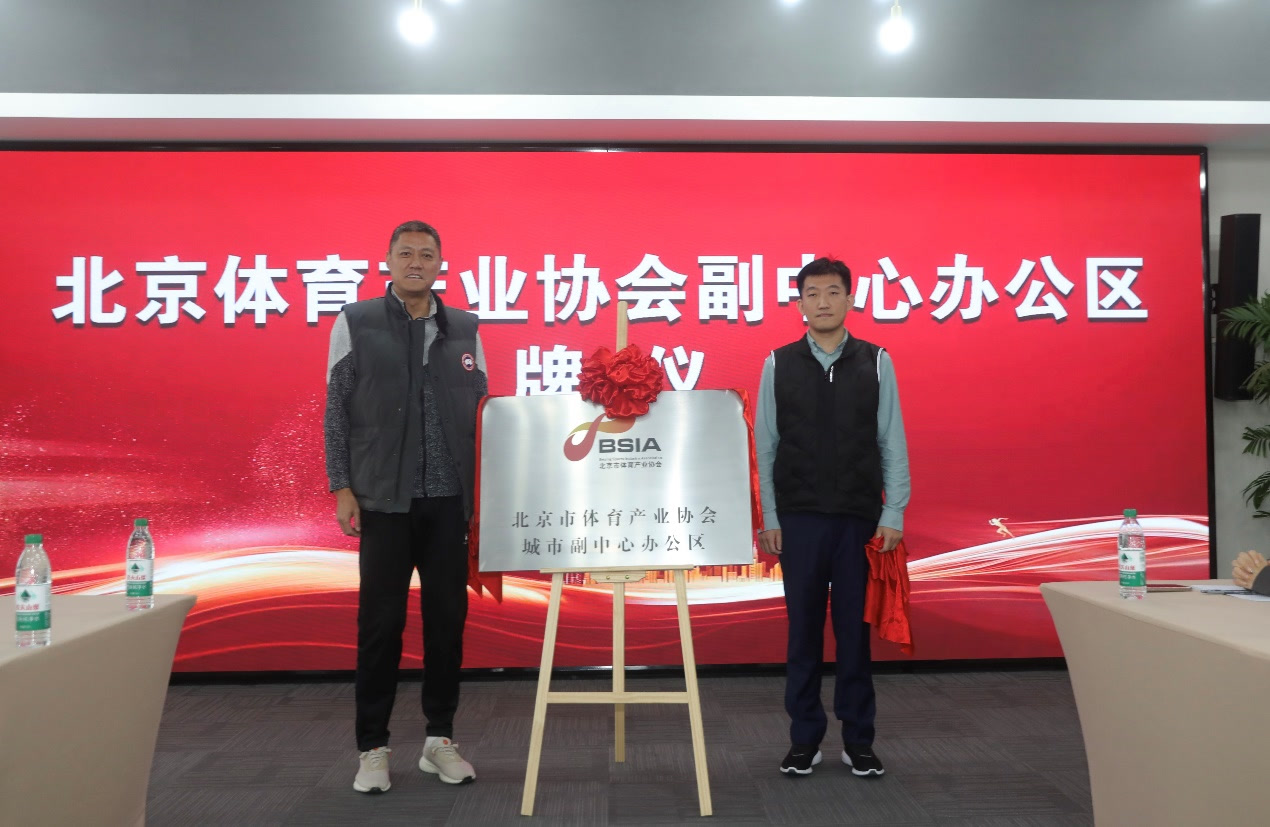仪式上,北京市体育产业协会副会长高原鸣与北京运河商务区产业发展服务有限公司产业服务部部长金鑫共同揭牌,这标志着北京市体育产业协会在副中心的发展迈出了坚实的一步。