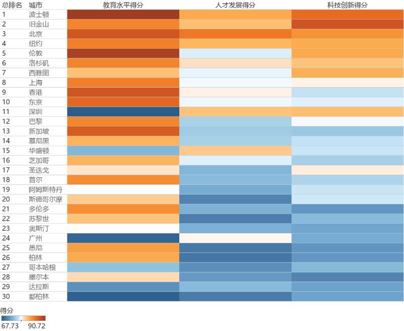 北京城市创新力位列世界第三。近日,全球创新城市科技教育人才协同发展评估结果发布,依据科技、教育、人才协同发展评估框架,评估全球30个主要创新城市(都市圈)创新力。