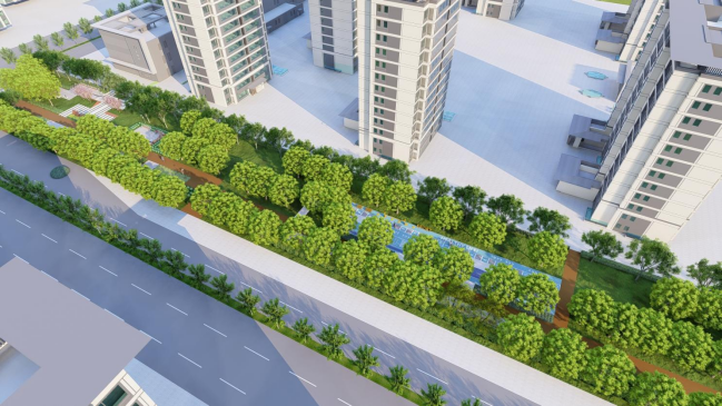 E18地块(漫生活):通过建设休闲交往的空间,增设临街休息设施,打造高标准小游园。