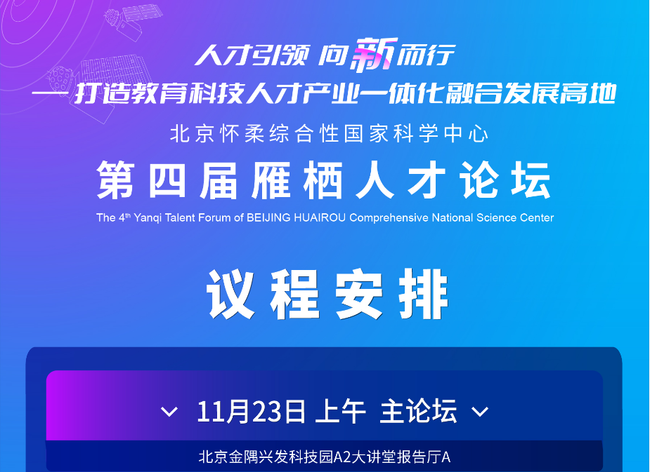 怀柔综合性国家科学中心第四届雁栖人才论坛将于本周六(11月23日)在金隅兴发科技园举办。论坛将以“人才引领向‘新’而行——打造教育科技人才产业一体化融合发展高地”为主题,邀请领军科学家、企业家、专家学者、青年人才共议教育科技人才一体化发展、国家战略人才力量培养、人才生态构建等热点问题。今日,《科技日报》对怀柔区人才工作进行了深度宣传报道,全面集中展示怀柔科学城在人才工作建设、创新要素集聚、改革举措探索等方面的成果,进一步提升怀柔科学城知名度和影响力。