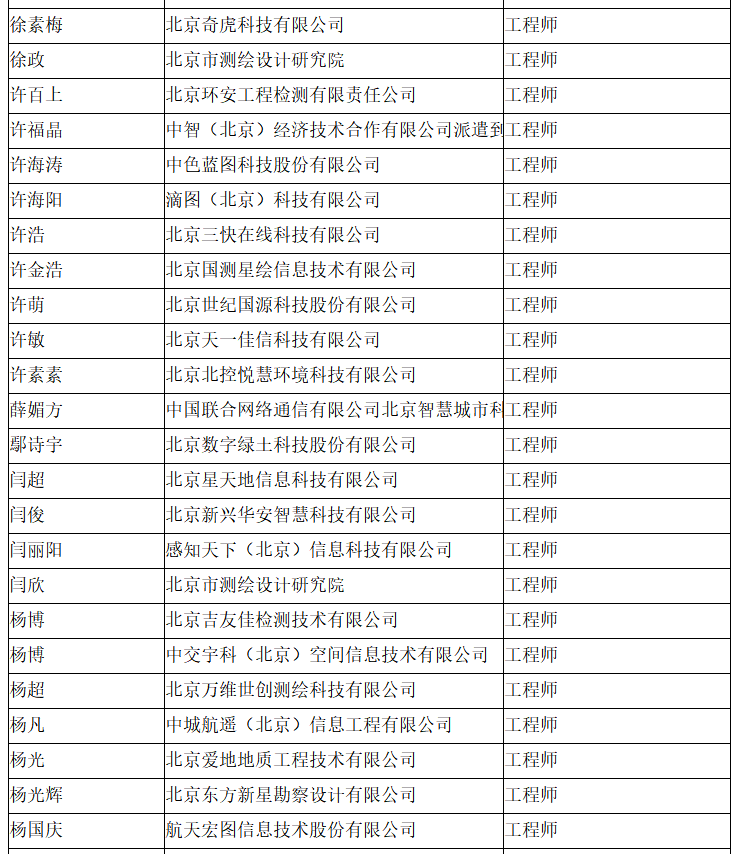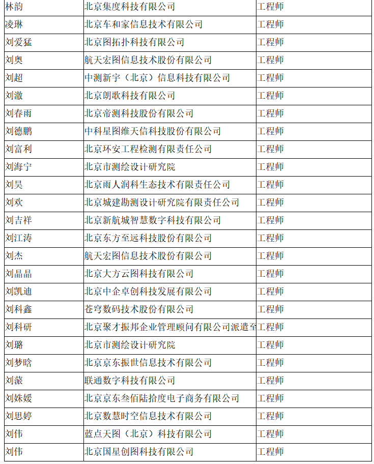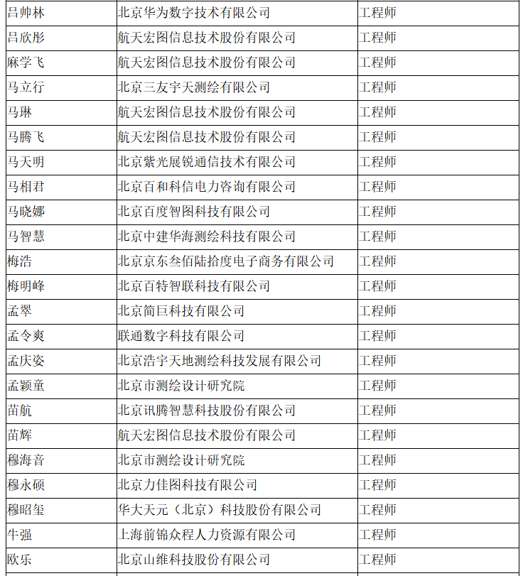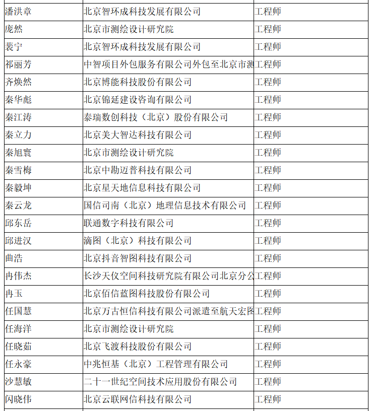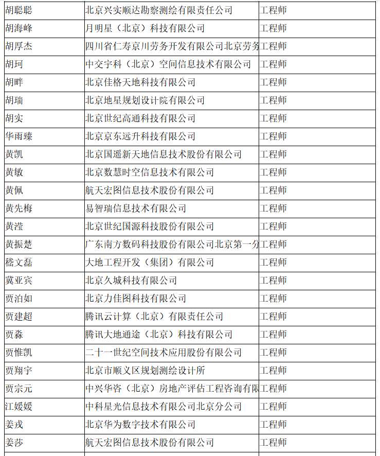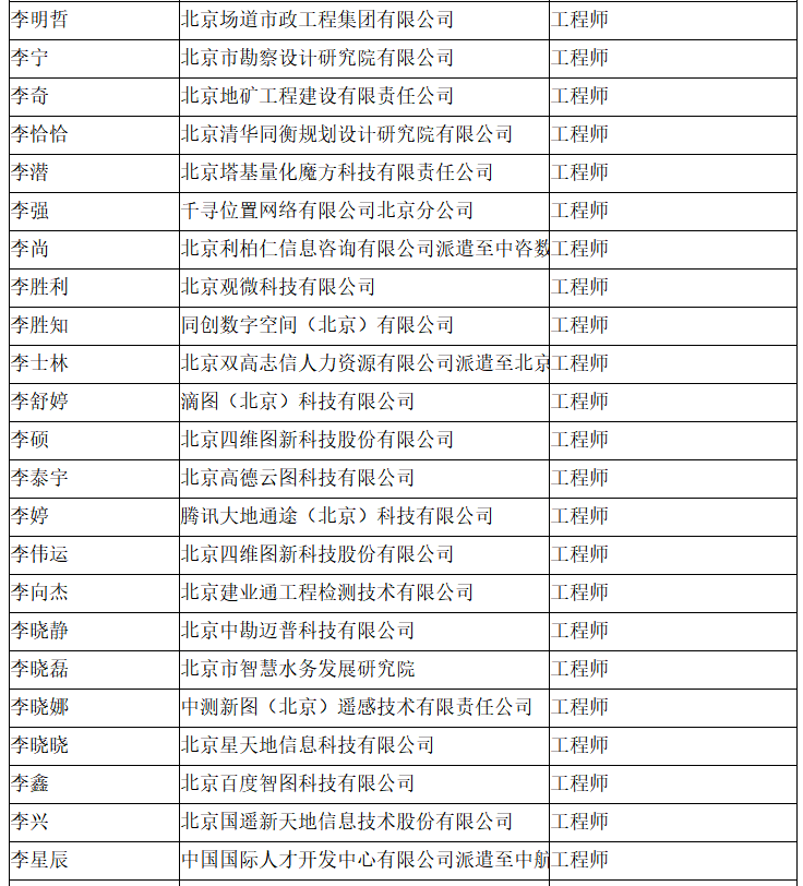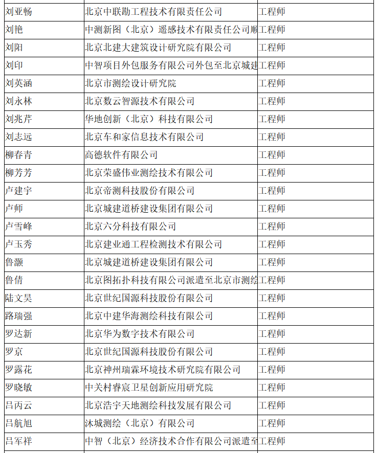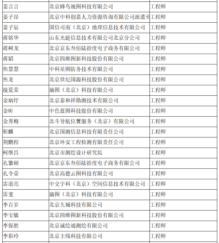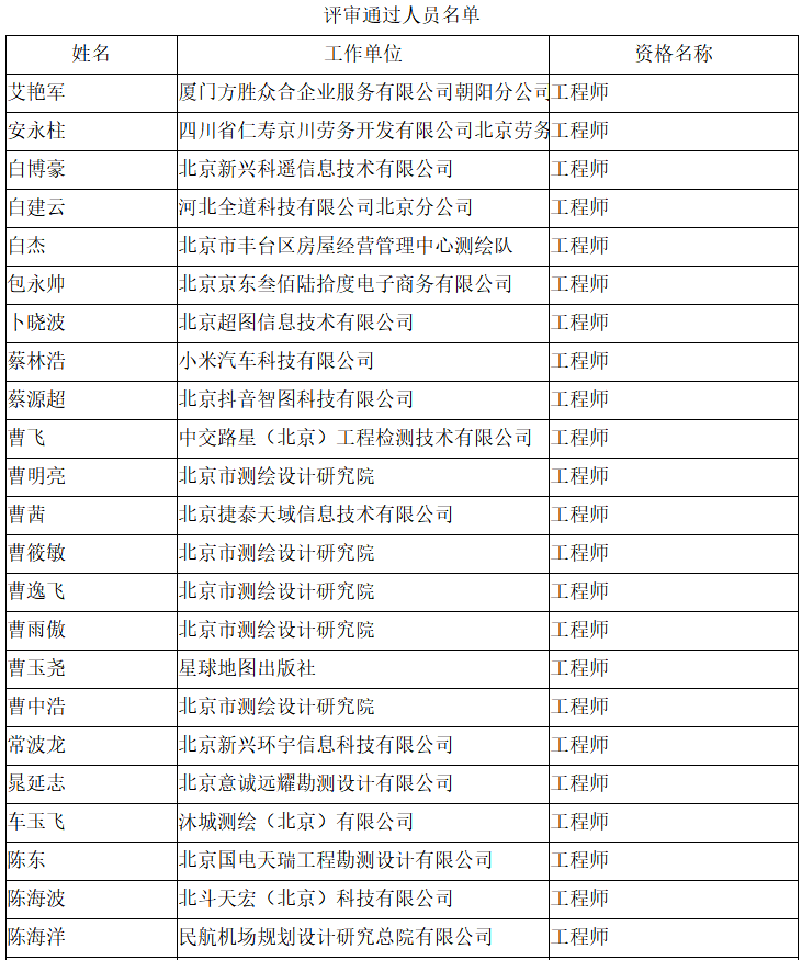 北京市工程技术系列(测绘)中级专业技术资格评审委员会于2024年10月12日召开会议,艾艳军等689人(名单附后)通过了工程师专业技术资格评审。根据《北京市职称评审管理暂行办法》(京人社事业发〔2020〕12号)的规定,经复核,现予以公示。