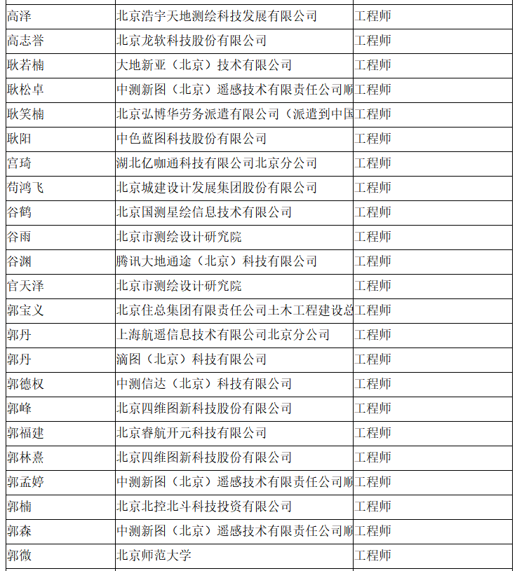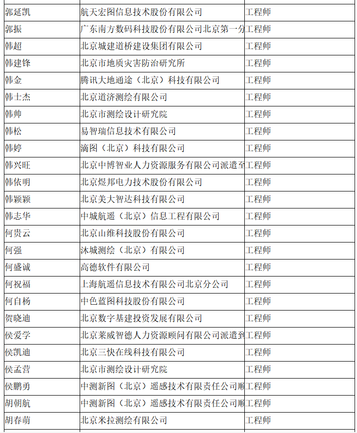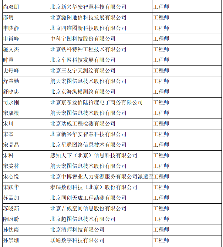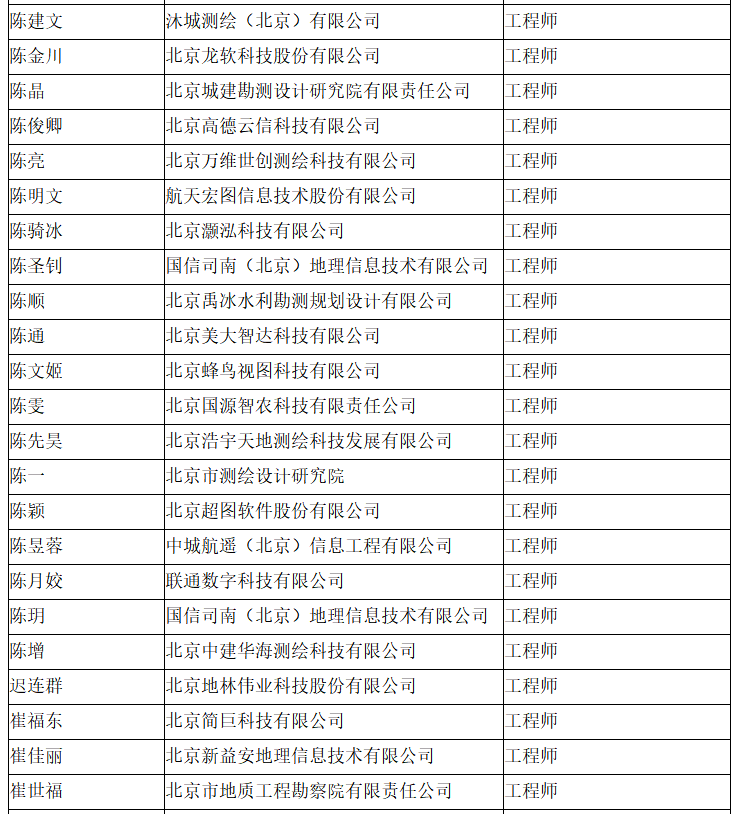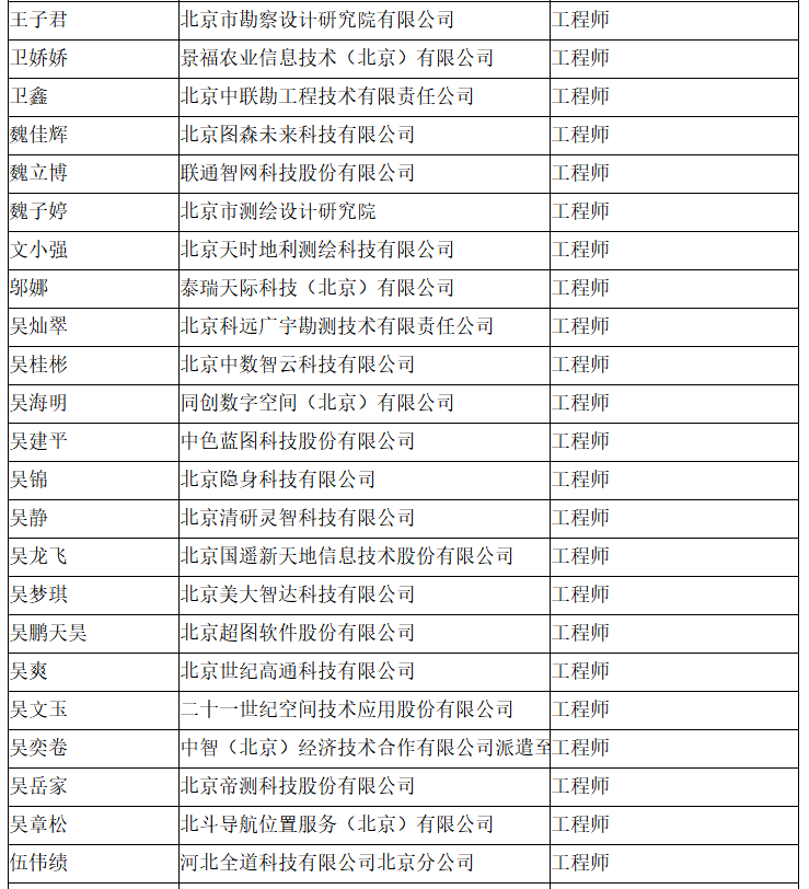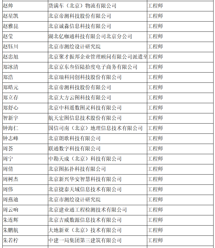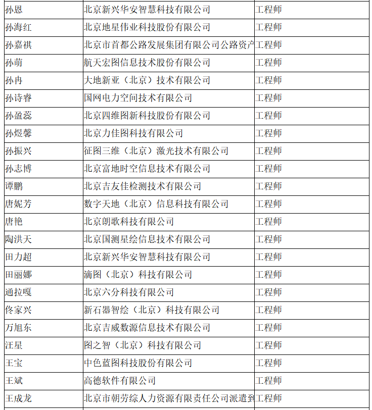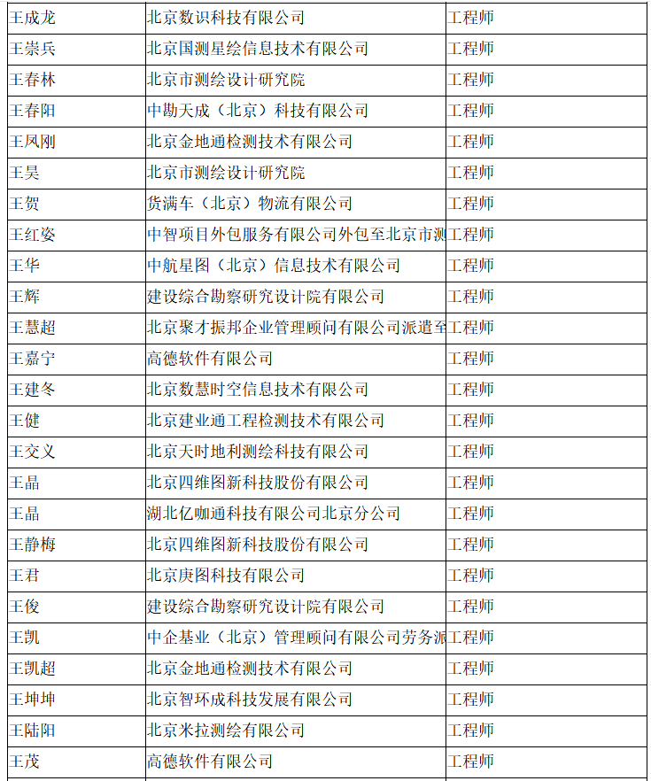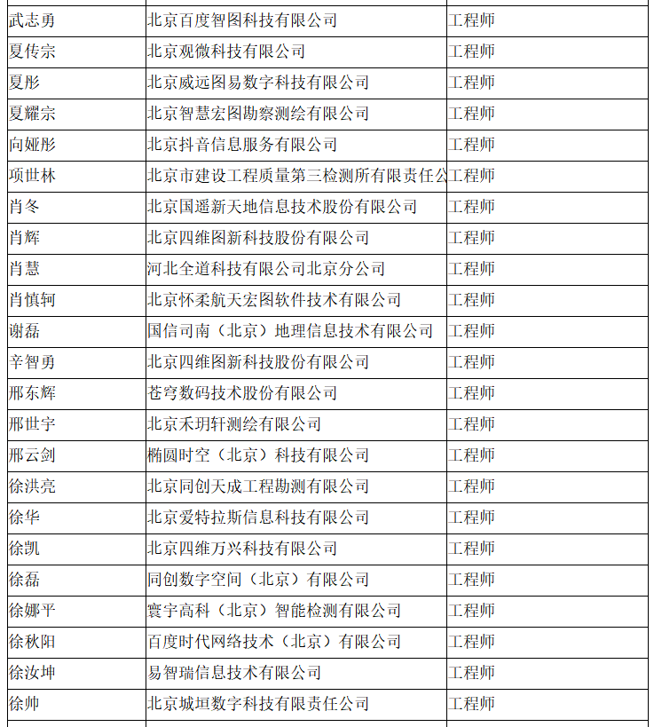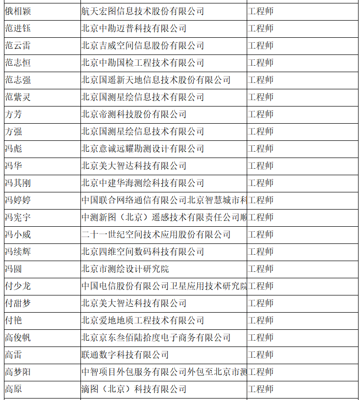北京市工程技术系列(测绘)中级专业技术资格评审委员会于2024年10月12日召开会议,艾艳军等689人(名单附后)通过了工程师专业技术资格评审。根据《北京市职称评审管理暂行办法》(京人社事业发〔2020〕12号)的规定,经复核,现予以公示。