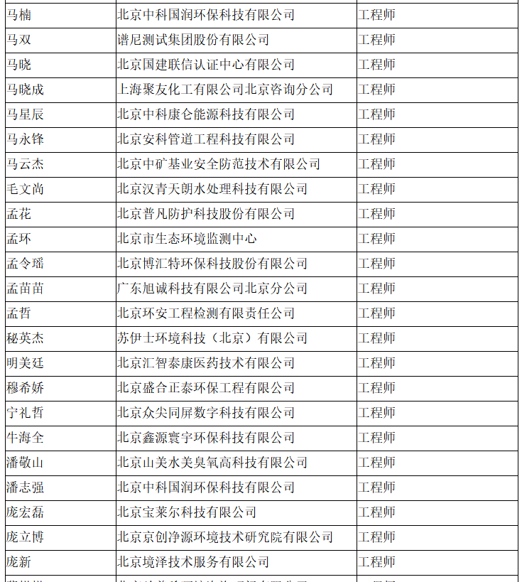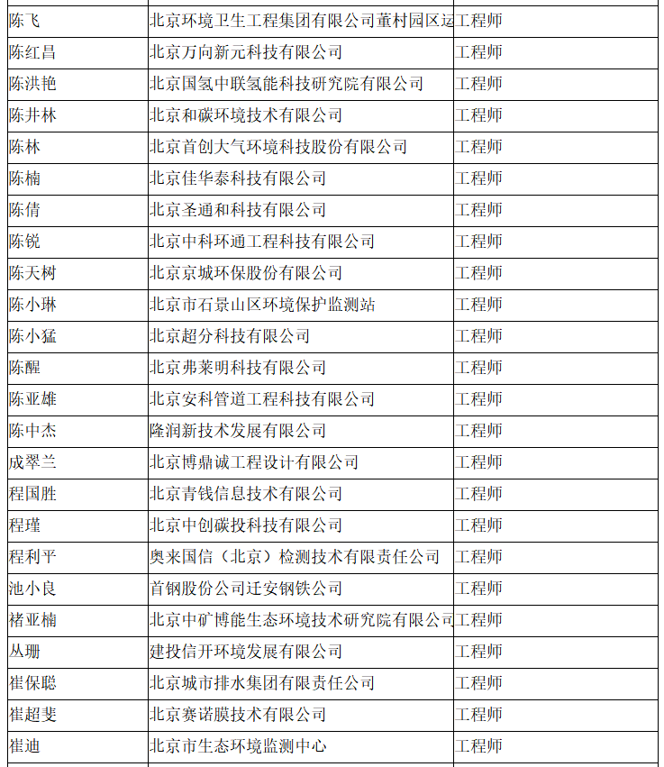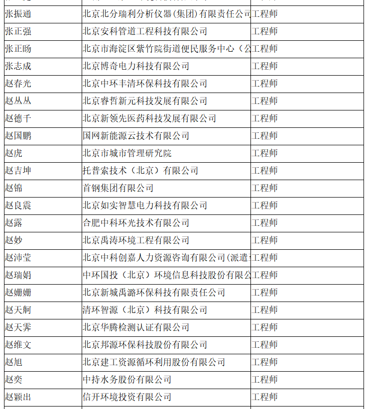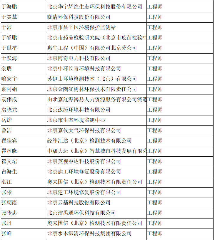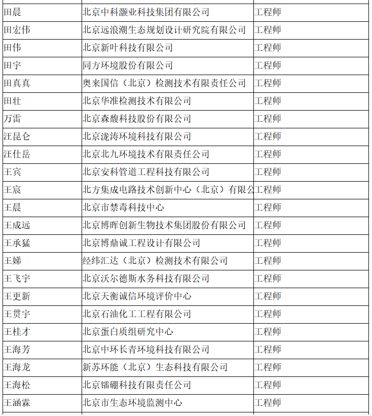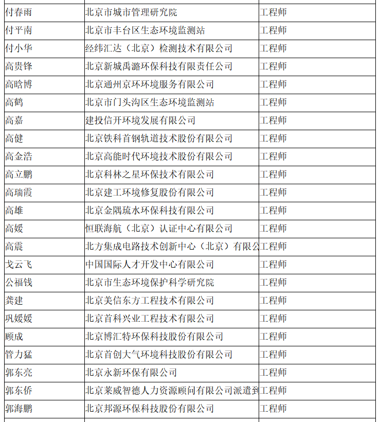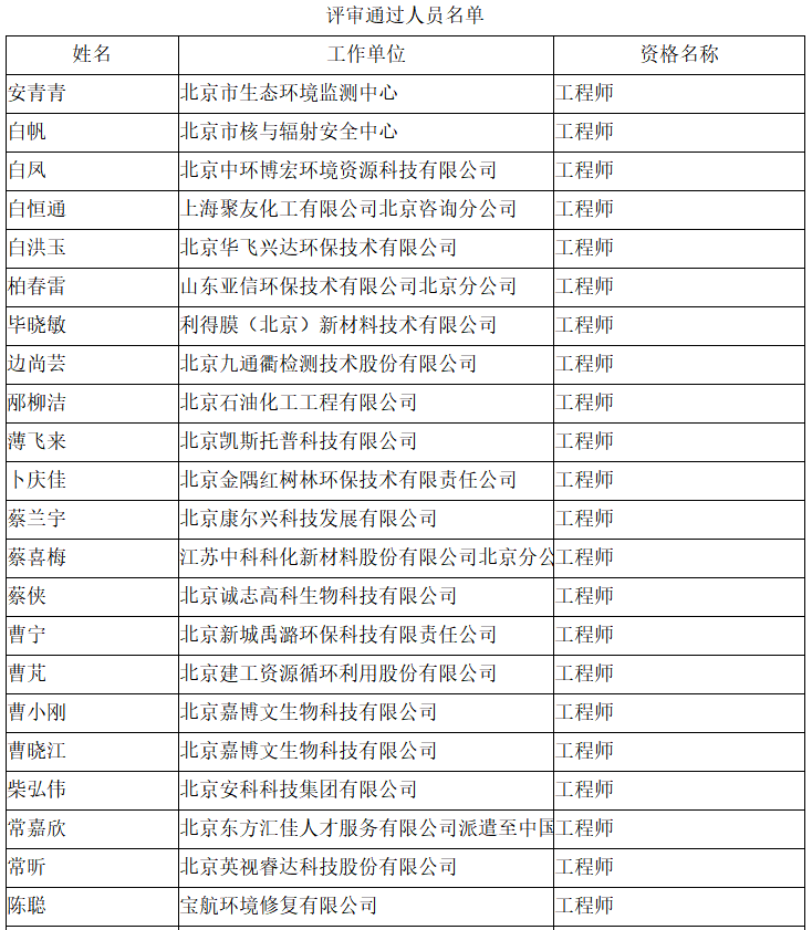 北京市工程技术系列(环境保护)中级专业技术资格评审委员会于2024年10月25日召开会议,安青青等619人(名单附后)通过了工程师专业技术资格评审。根据《北京市职称评审管理暂行办法》(京人社事业发〔2020〕12号)的规定,经复核,现予以公示。