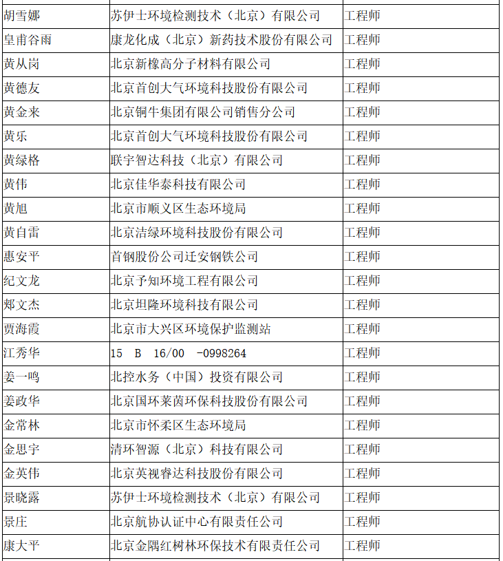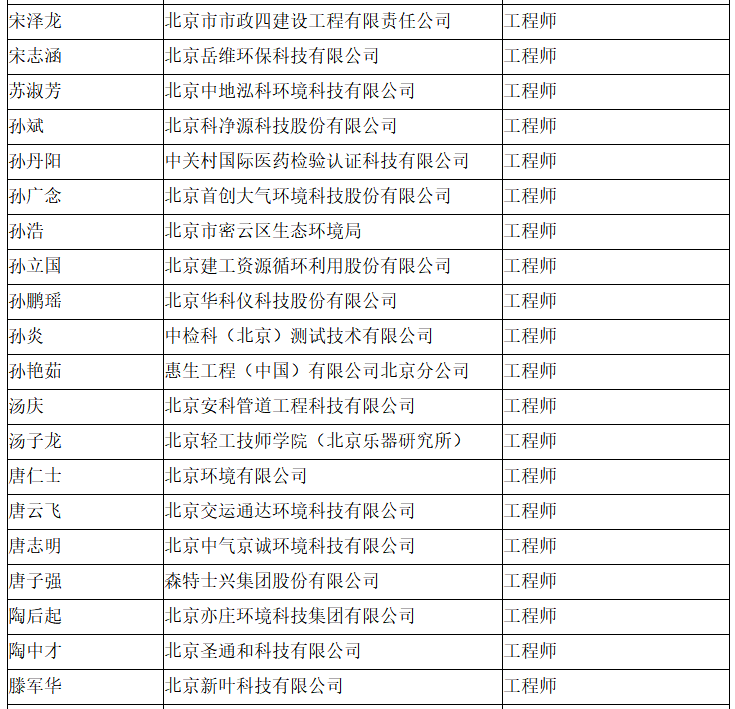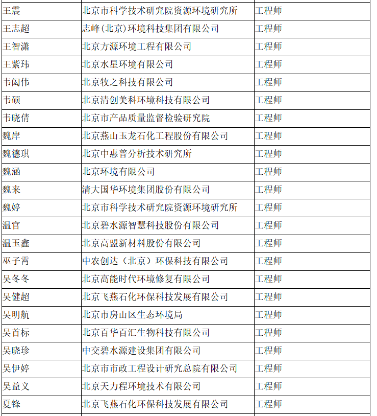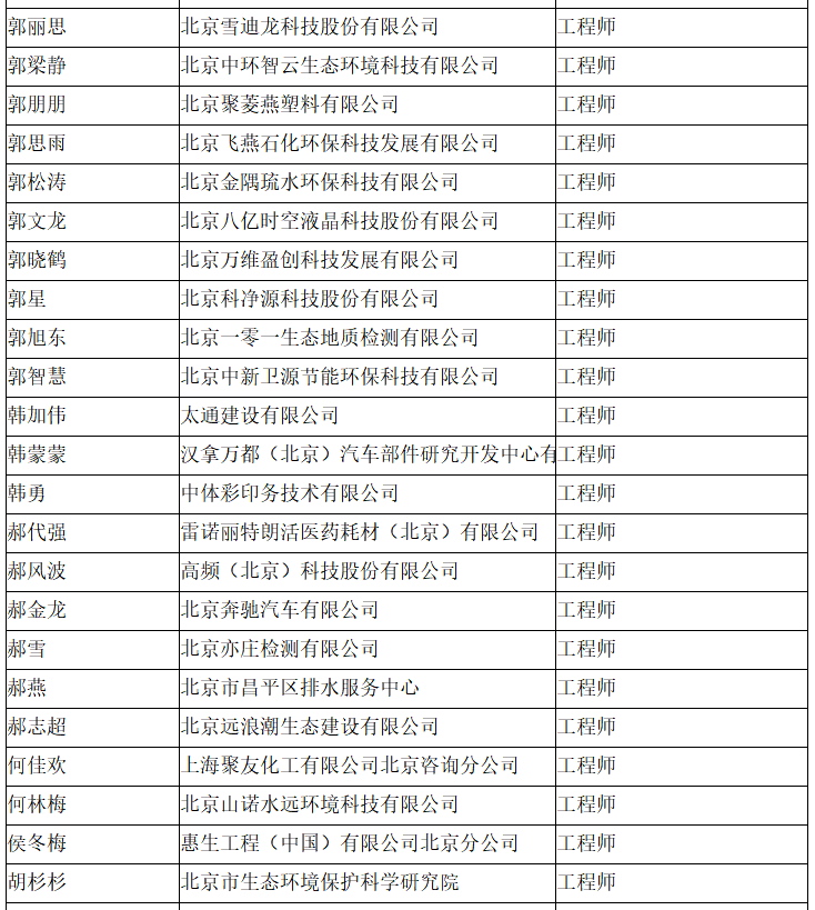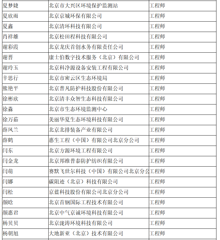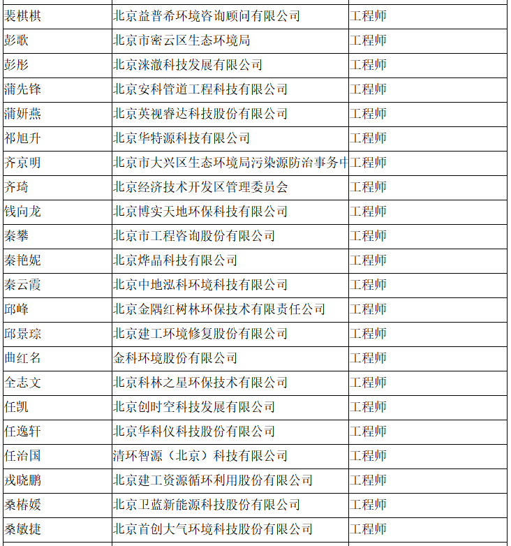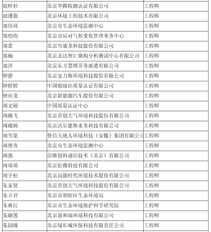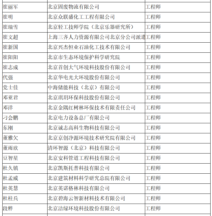 北京市工程技术系列(环境保护)中级专业技术资格评审委员会于2024年10月25日召开会议,安青青等619人(名单附后)通过了工程师专业技术资格评审。根据《北京市职称评审管理暂行办法》(京人社事业发〔2020〕12号)的规定,经复核,现予以公示。