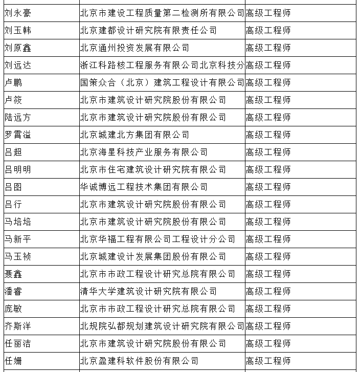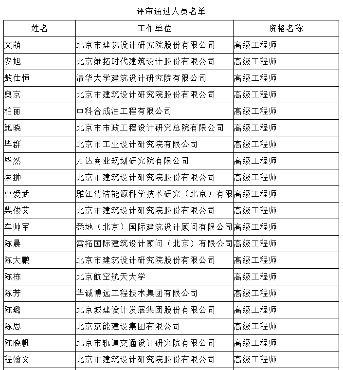 北京市工程技术系列(建筑工程设计)高级专业技术资格评审委员会于2024年9月9日召开会议,艾萌等294人(名单附后)通过了高级工程师专业技术资格评审。根据《北京市职称评审管理暂行办法》(京人社事业发〔2020〕12号)的规定,经复核,现予以公示。