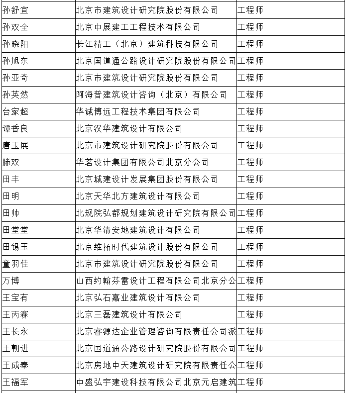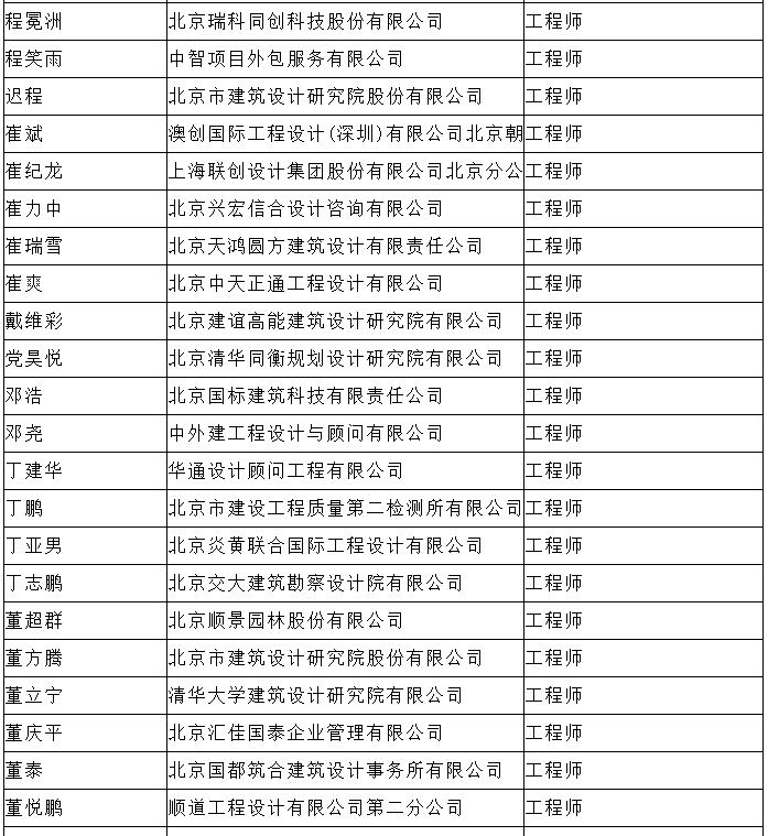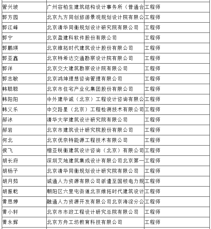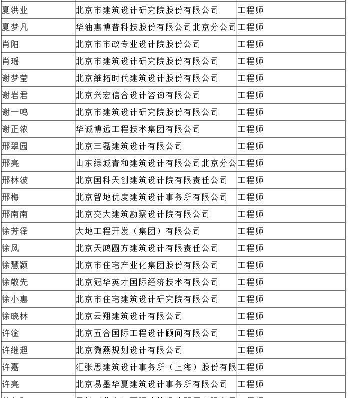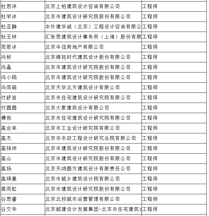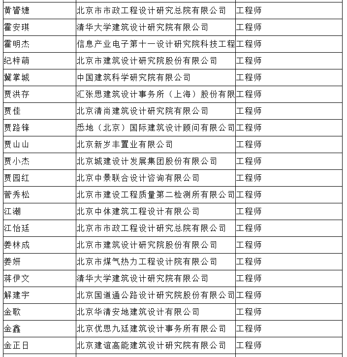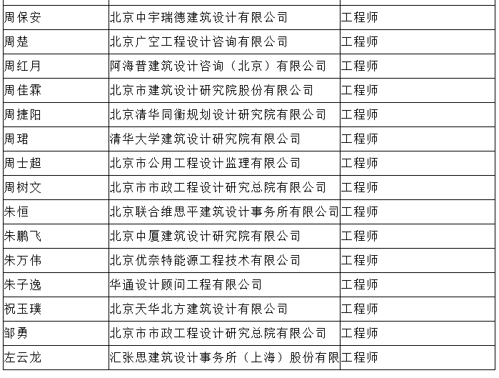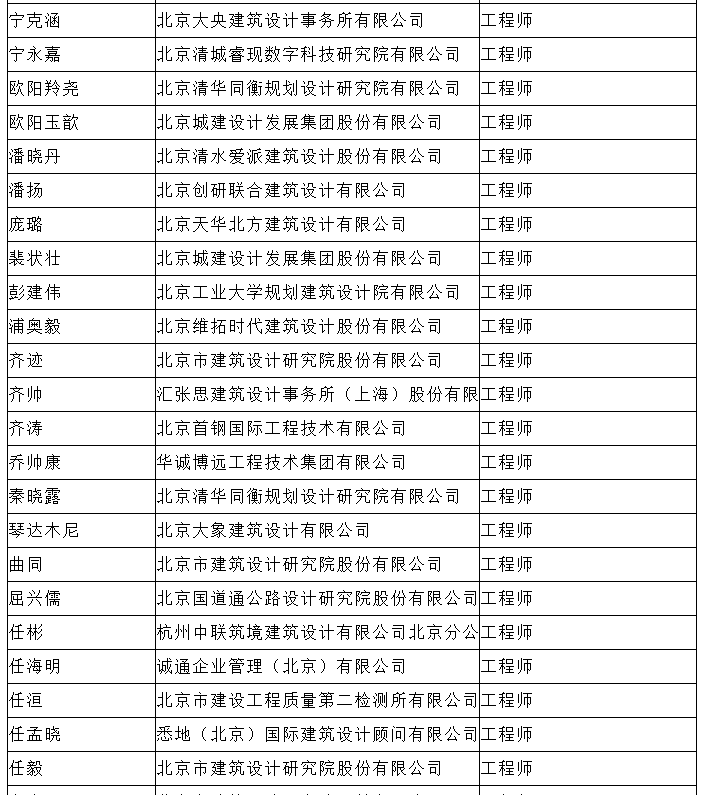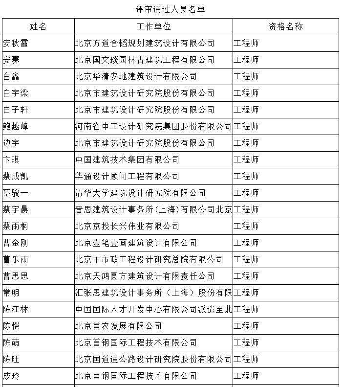 北京市工程技术系列(建筑工程设计)中级专业技术资格评审委员会于2024年10月25日召开会议,安秋霞等482人(名单附后)通过了工程师专业技术资格评审。根据《北京市职称评审管理暂行办法》(京人社事业发〔2020〕12号)的规定,经复核,现予以公示。