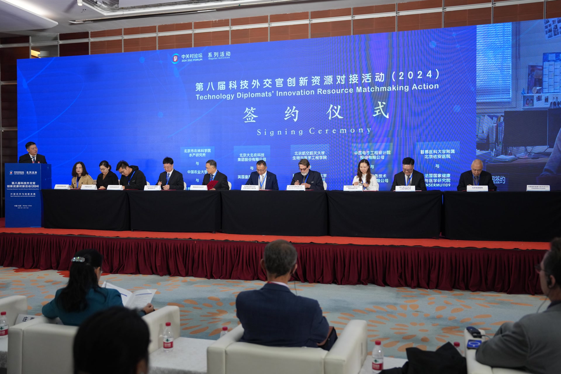 11月20日,2024中关村论坛系列活动——第八届科技外交官创新资源对接活动在北京举办,来自五大洲30余个国家的驻华科技外交官、国际组织和机构代表、知名专家学者、世界500强企业代表,以及在京外国留学生代表等150余位代表齐聚一堂,共话国际科技合作。活动现场,5个中外科技合作项目签订了合作协议,5个国家的驻华科技外交官分别进行了创新政策推介,10个高质量创新项目进行了路演。