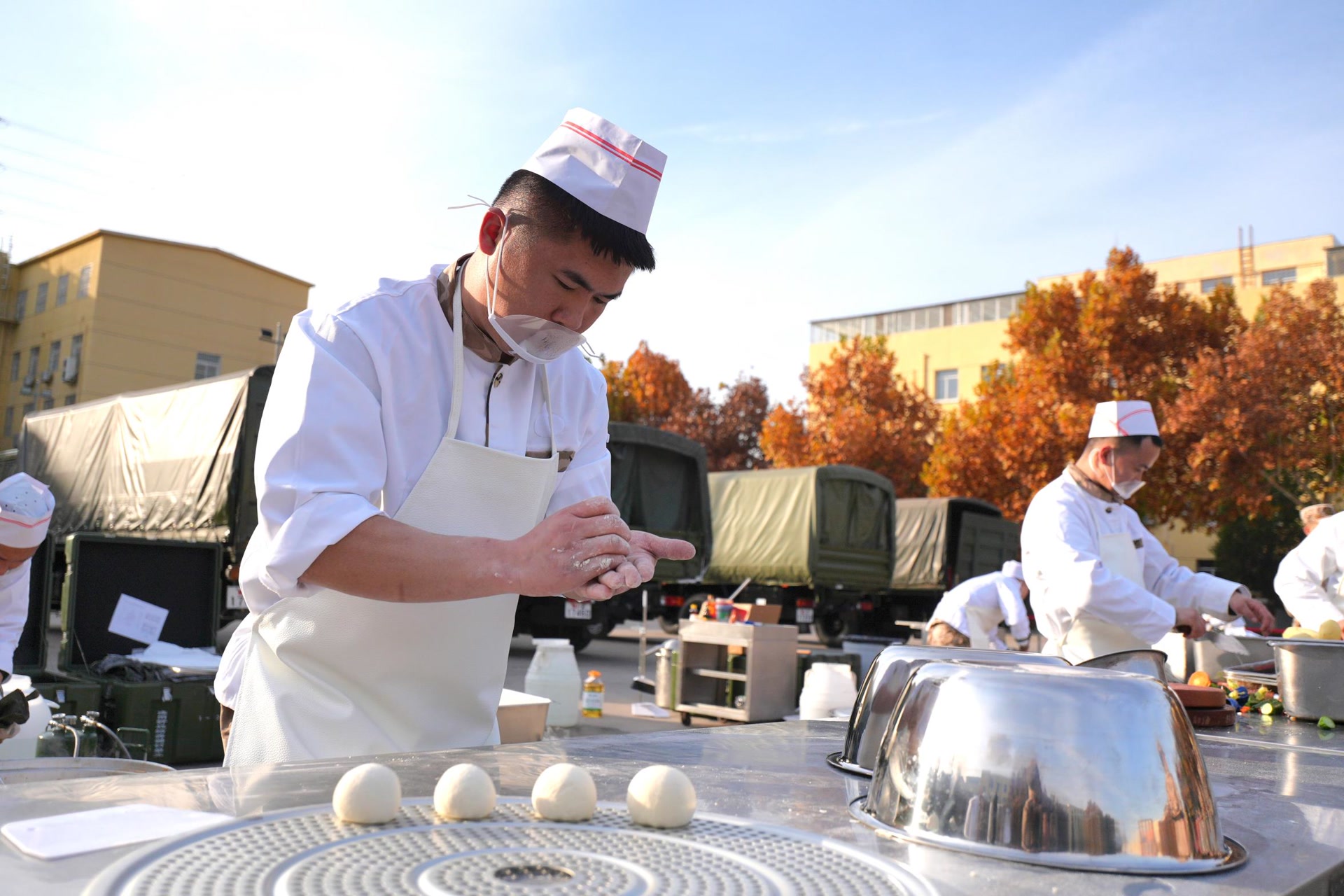 不见炊烟起,忽闻饭菜香。在炊事员比武现场,参赛队员身穿整洁的炊事服,手持锅铲,全神贯注地投入这场厨艺较量,分工有序,忙而不乱,一道道美味佳肴须臾间冒着热气出锅了。软糯Q弹的红烧肉,色泽诱人的宫保鸡丁,清淡爽口的青椒炒土豆丝……每道菜色香味俱全,瞬间勾起了官兵食欲。