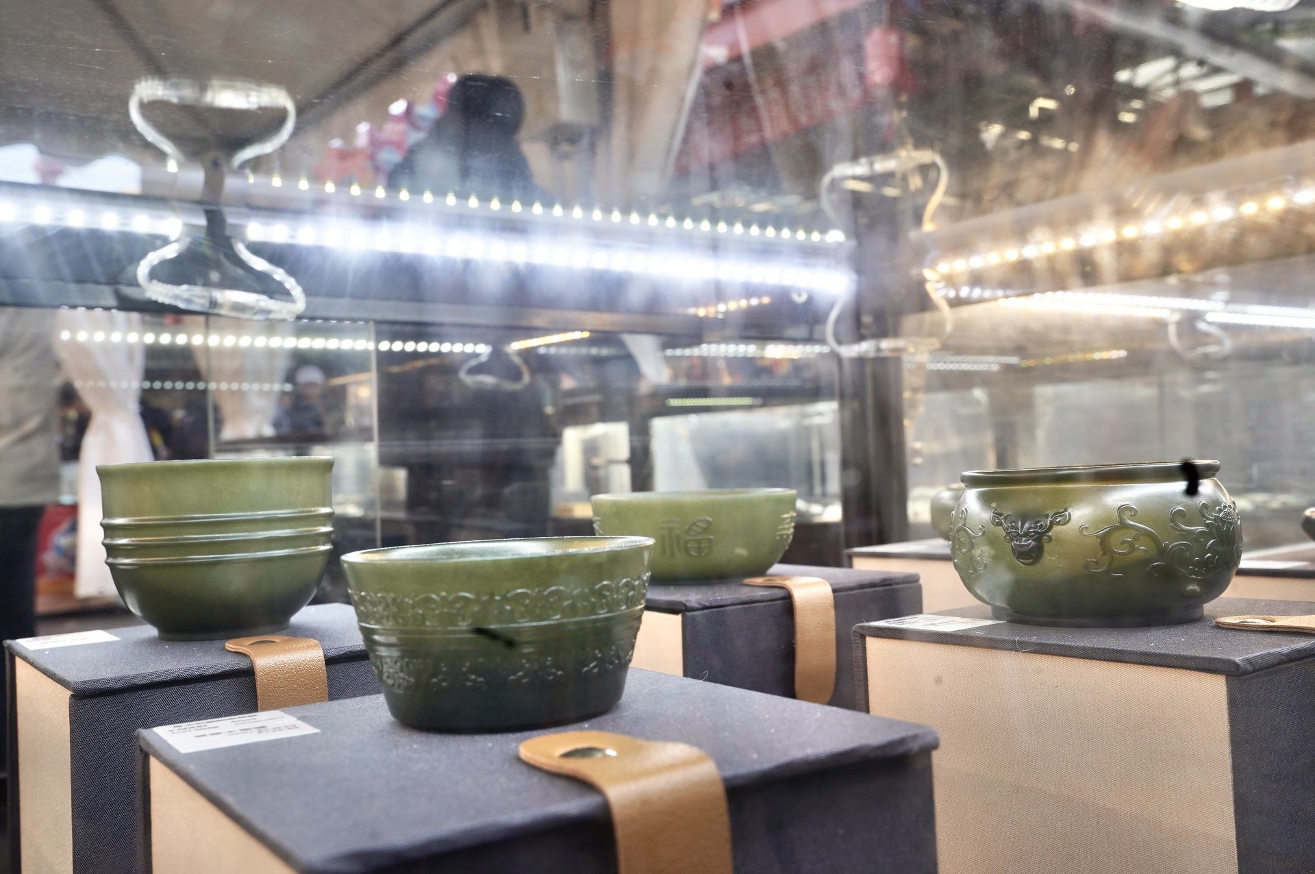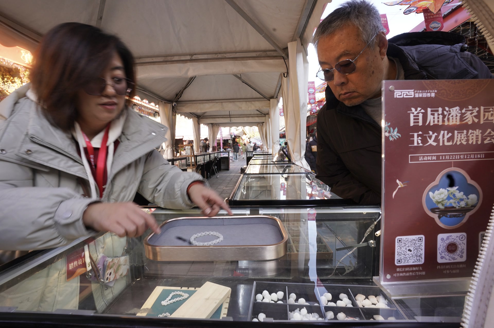 白玉、黄玉、碧玉、青玉、墨玉、糖玉,颜色应有尽有;从手镯到吊坠,从玉佩到玉雕,作品多达十几大类……11月22日,首届潘家园玉石文化节暨玉石展销会在潘家园旧货市场拉开帷幕。3.5万件和田玉作品亮相,展现玉石独特魅力,向大众弘扬和普及传统玉石文化。文化节为期近一个月,将持续到12月18日。