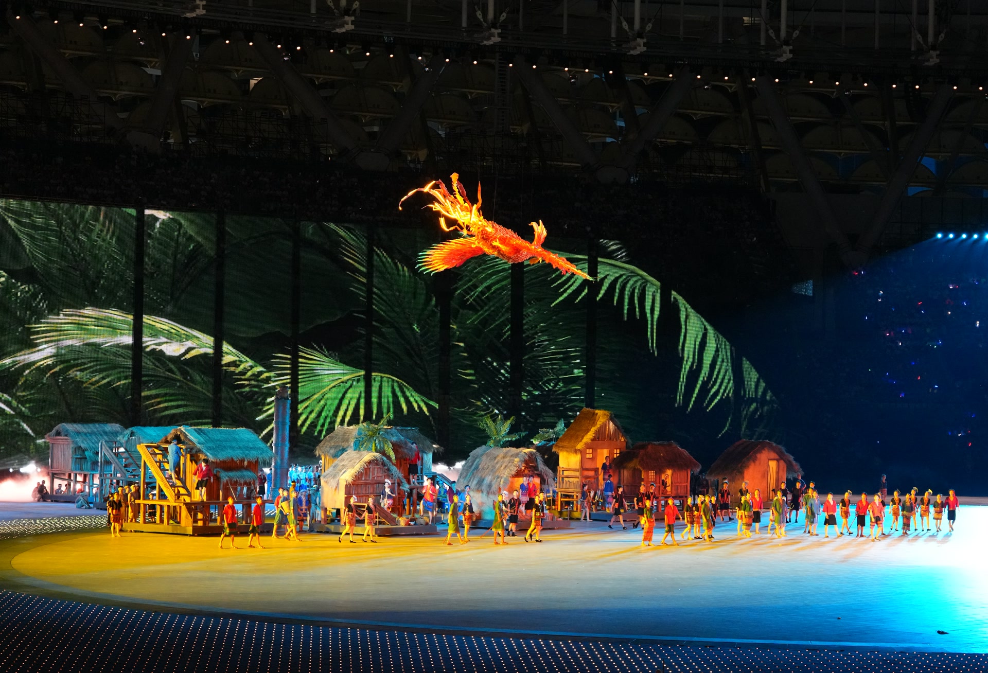 11月22日晚,第十二届全国少数民族传统体育运动会在海南三亚开幕,56个民族欢聚一堂,在2个小时的时间里,5000多名演职人员向现场3.5万名观众呈现了一场精彩的演出。