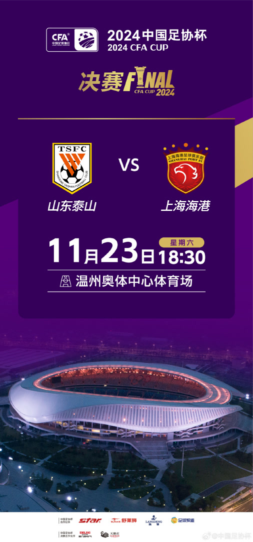 11月23日晚,本赛季足协杯决赛在温州奥体中心上演。凭借上半场的两个进球,上海海港队3比1击败山东泰山队,夺得了本赛季中超联赛和足协杯的双冠王。