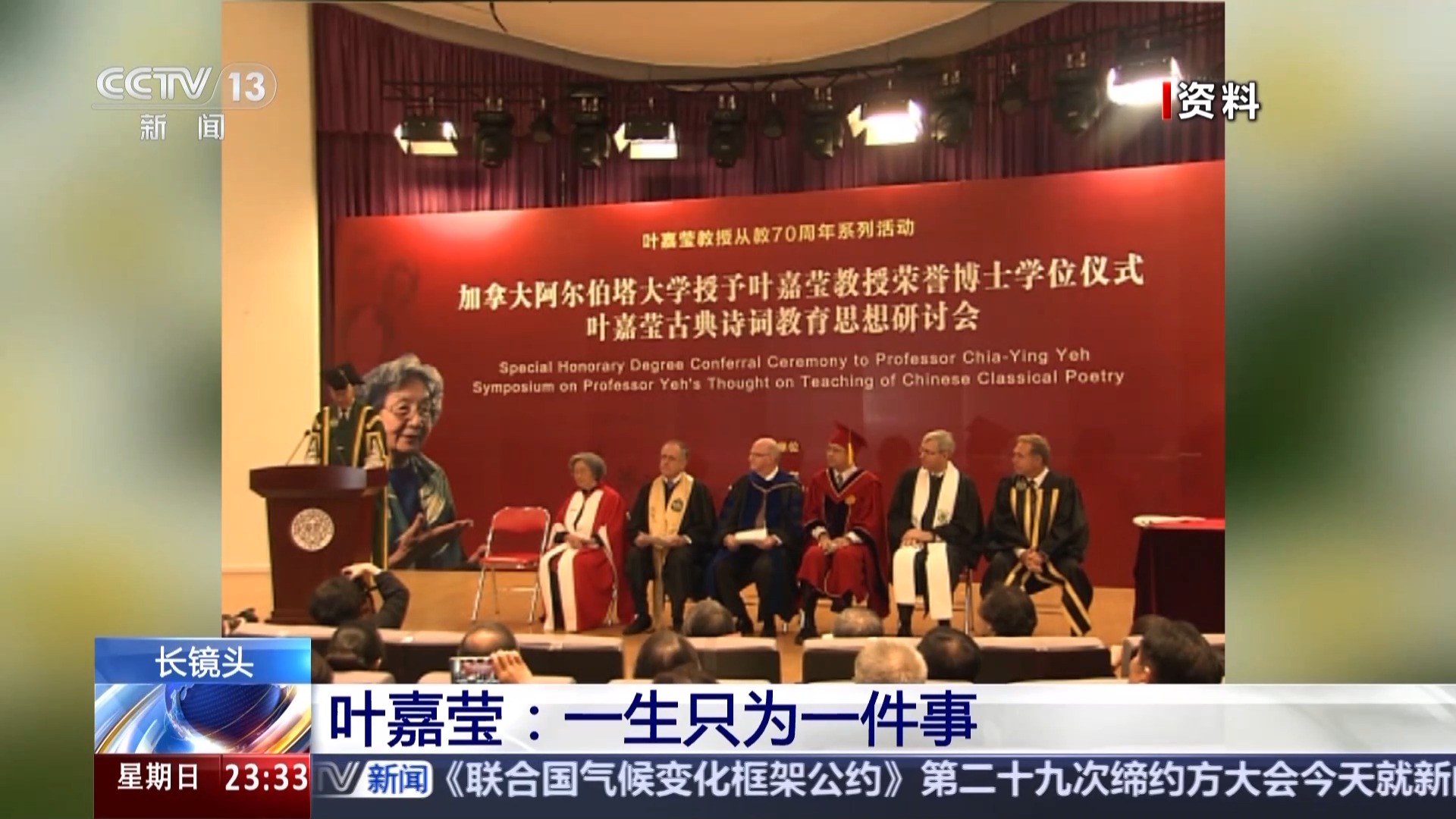 总台记者获悉,中国古典文学研究学者、南开大学讲席教授叶嘉莹于昨日(24日)逝世,享年100岁。叶嘉莹,是北京辅仁大学古典文学高才生、加拿大皇家学会唯一一位中国古典文学院士。她以一方讲台传授浩瀚的中国古典诗词,还接受哈佛大学等多个国外高校的邀请,为欧美学者讲解中华古典文学。回国后,在南开大学创办了中华诗教与古典文化研究所。