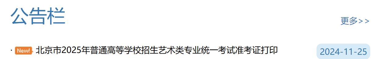 北京教育考试院网站11月25日消息,北京市2025年普通高等学校招生艺术类专业统一考试准考证已经可以查询、下载、打印了。