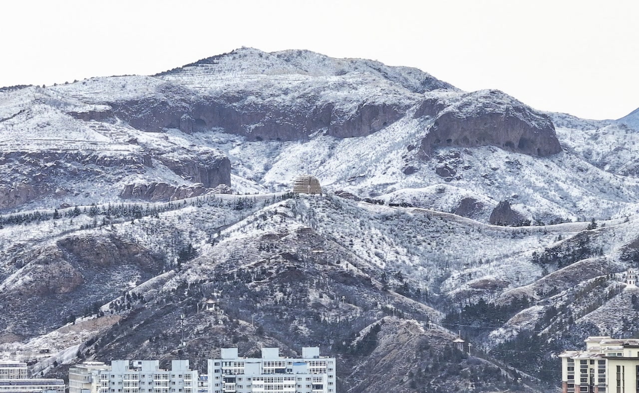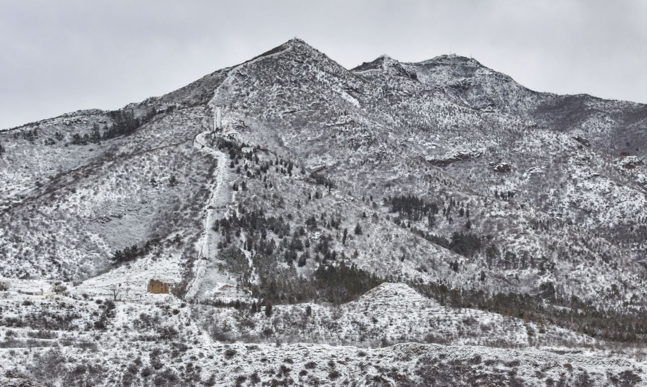 11月25日,受冷空气影响,河北省张家口市迎来入冬以来的首场大范围降雪。雪后的崇山峻岭银装素裹、美如图画。