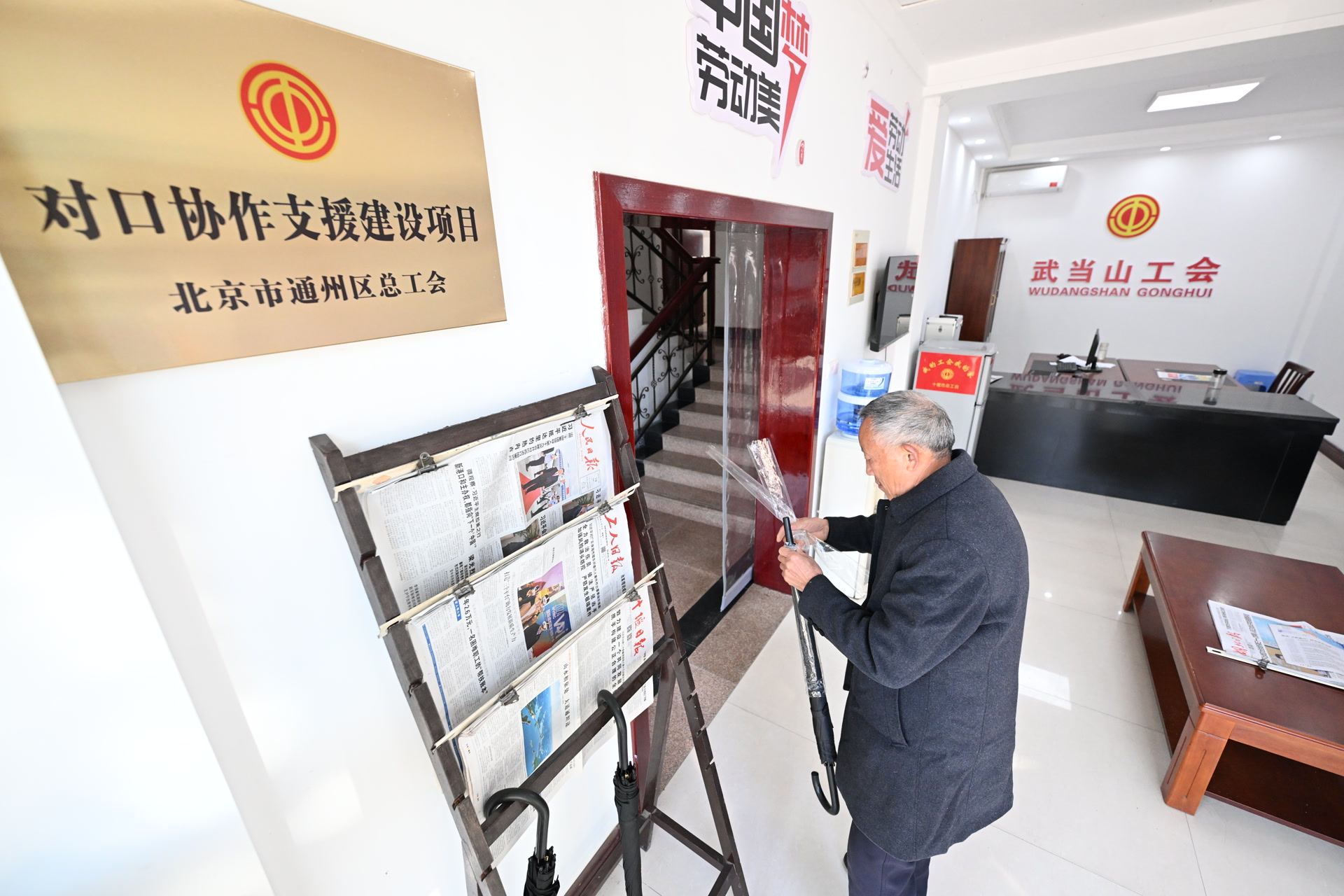 “服务中心面向户外劳动者和附近企业员工,预计可以为1200余名职工提供配套服务。”武当山特区群团工作部负责人贾燕介绍,中心于2024年6月由北京市通州区总工会援建,由特区重点企业服务中心承建,于9月投入使用。“这已经不是通州区援建的第一个服务设施了。此前,武当山特区工会和景区办事处就在通州区总工会的援建下打造了职工之家,可以为游客与职工提供食品加热、饮水、小憩、咨询等免费服务。”