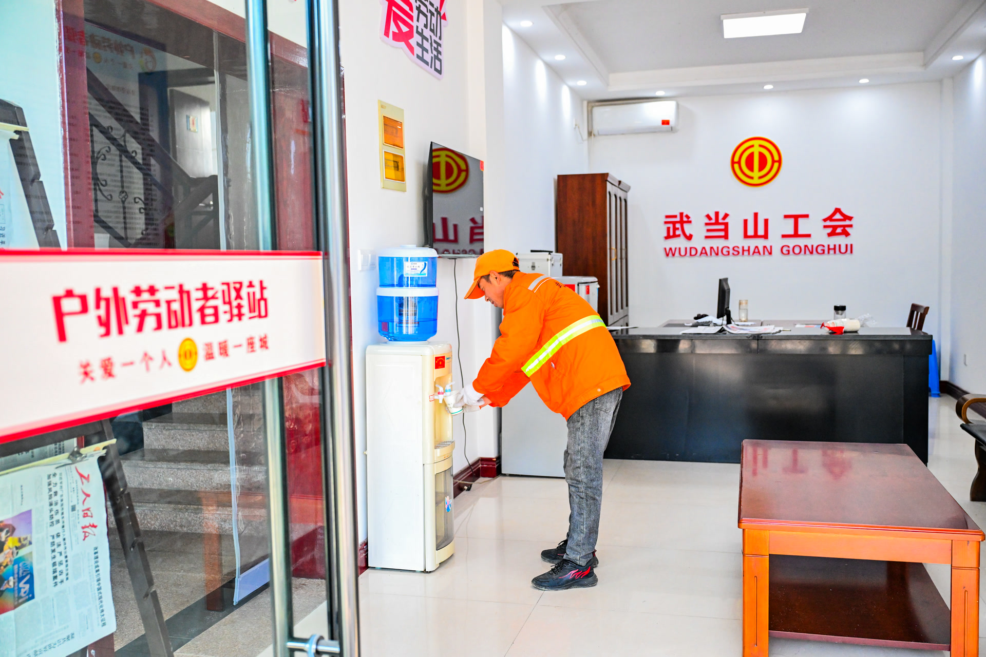“自从这里开门,我每天都来。”忙碌了一上午的梁师傅是武当山特区的环卫工人,两个月前,位于他工作区域附近的武当山特区职工综合服务中心正式投入运营,其中设立的户外劳动者驿站给梁师傅的生活提供了许多便利。“驿站有热水还有空调,之前天热的时候也提供凉水,还有微波炉可以热饭,特别方便。”