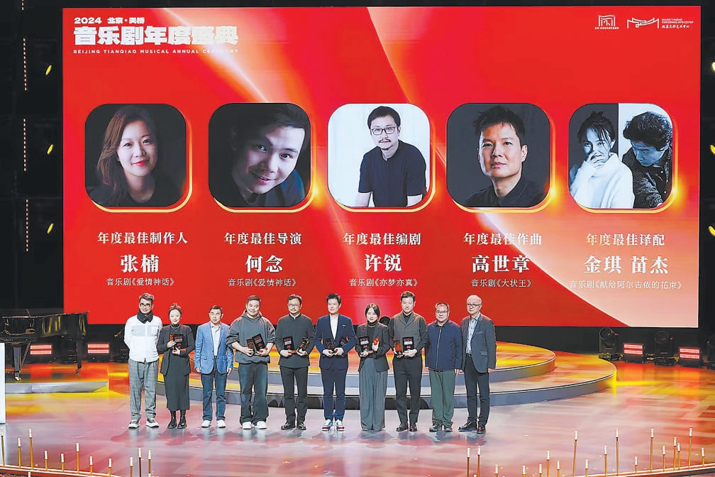 昨晚,2024北京·天桥音乐剧年度盛典晚会在天桥艺术中心上演。盛典上正式公布推优结果。《大状王》《爱情神话》《献给阿尔吉侬的花束》《亦梦亦真》《扬名立万》等多个剧组的主创齐聚天桥,共享音乐剧行业的荣誉时刻。