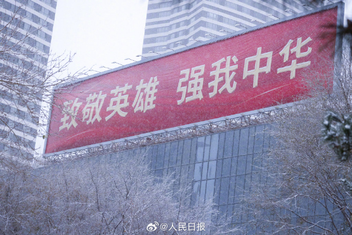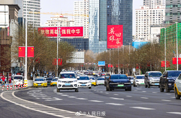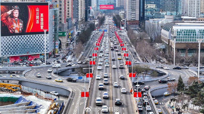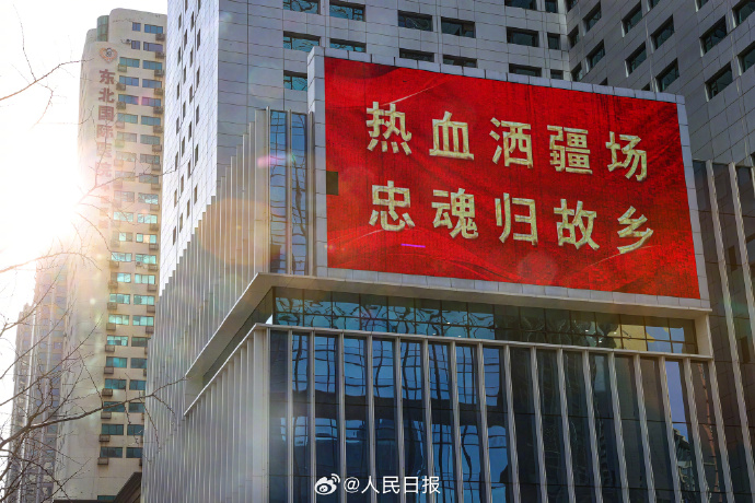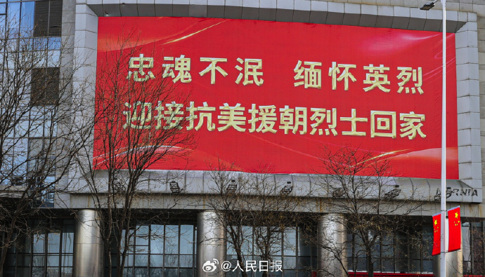 今天,为迎接英雄回祖国,辽宁沈阳街头悬挂起五星红旗,多处户外大屏打出标语,向人民志愿军忠烈致敬!
