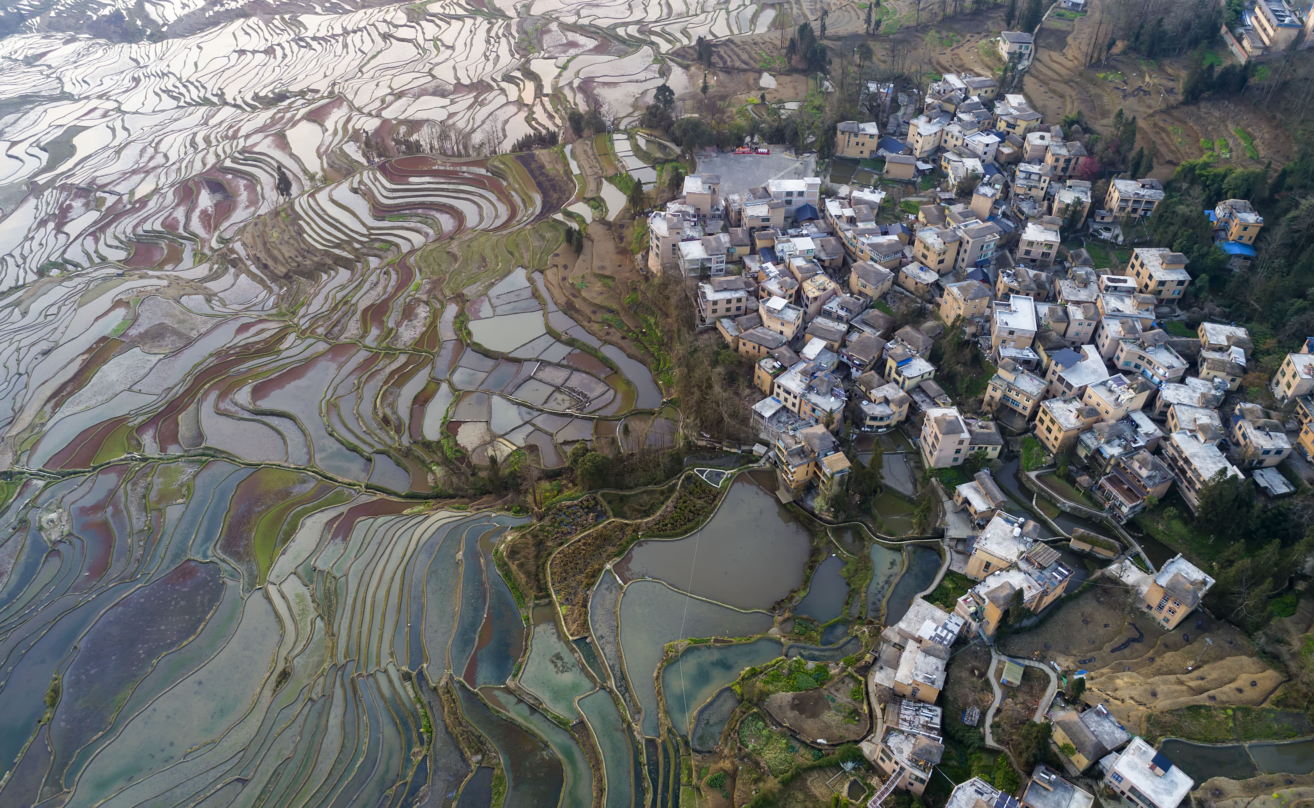 近日,位于云南省红河哈尼族彝族自治州元阳县的哈尼梯田迎来了最佳观赏期,梯田旁的阿者科村也吸引了更多游客前来“打卡”。