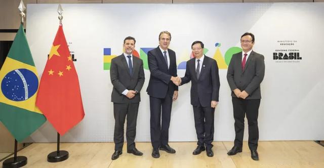 邱勇(右二)与巴西教育部长桑塔纳(左二)等合影