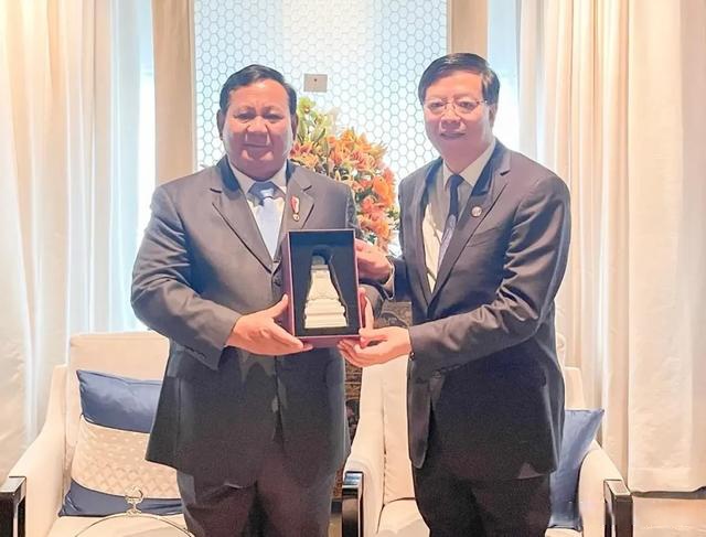 邱勇与印尼总统普拉博沃合影