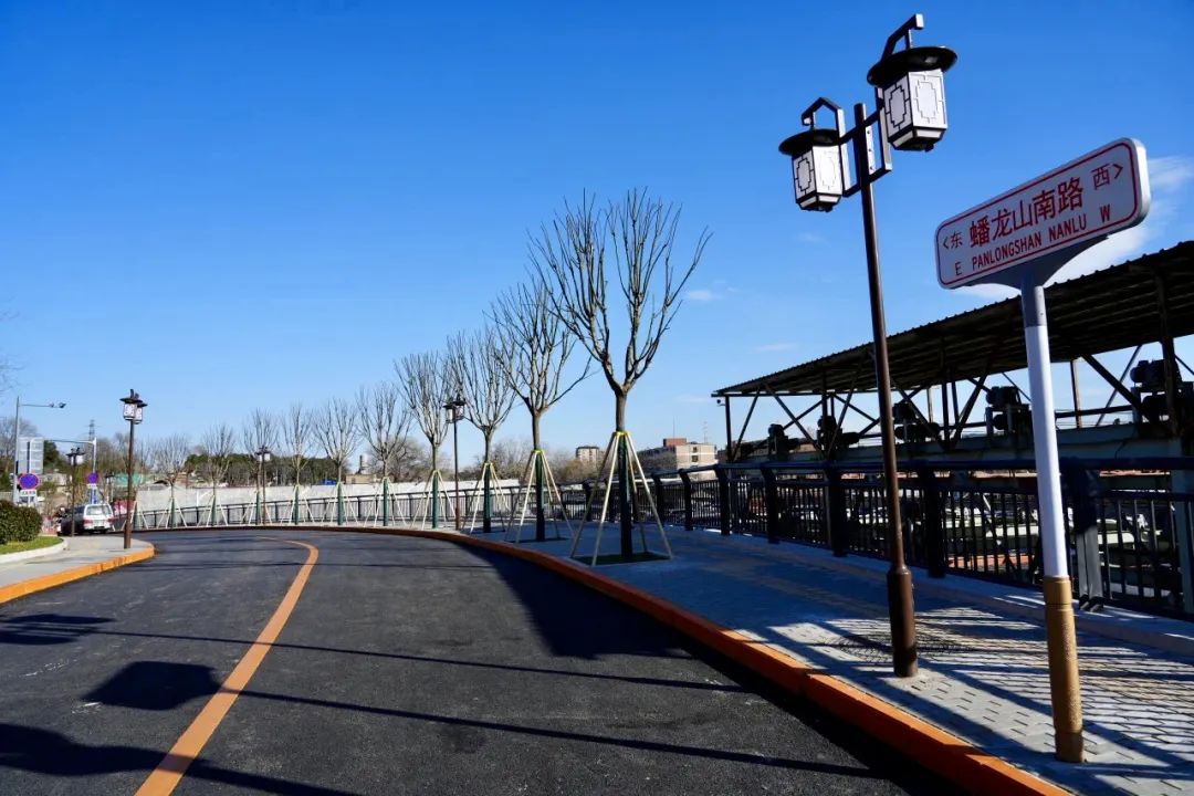 2024年北京市“疏整促”专项行动,模式口历史文化街区天马市场北侧路被纳入其中,目前已完成新建结构挡墙、道路工程、交通工程、绿化工程、路灯工程等施工,于今天正式通车。
